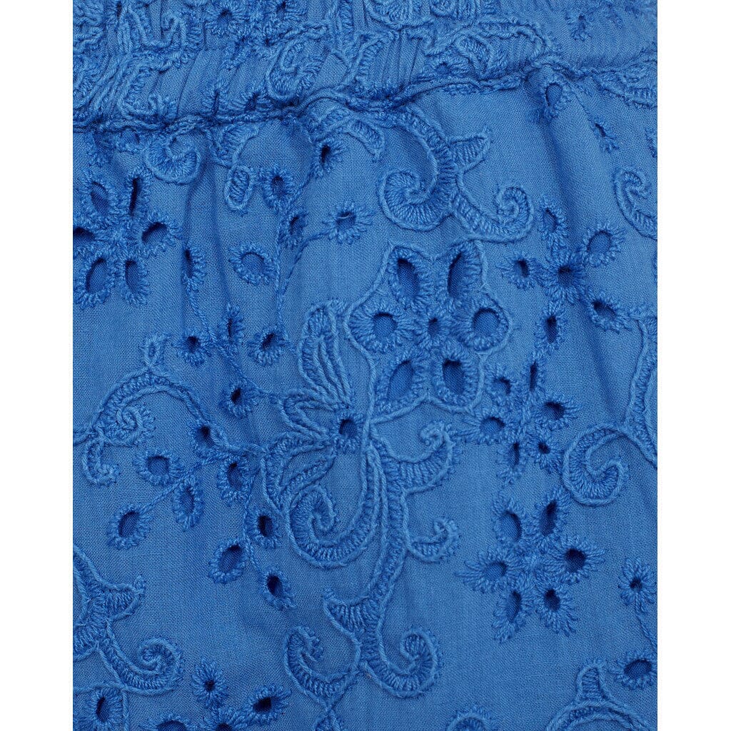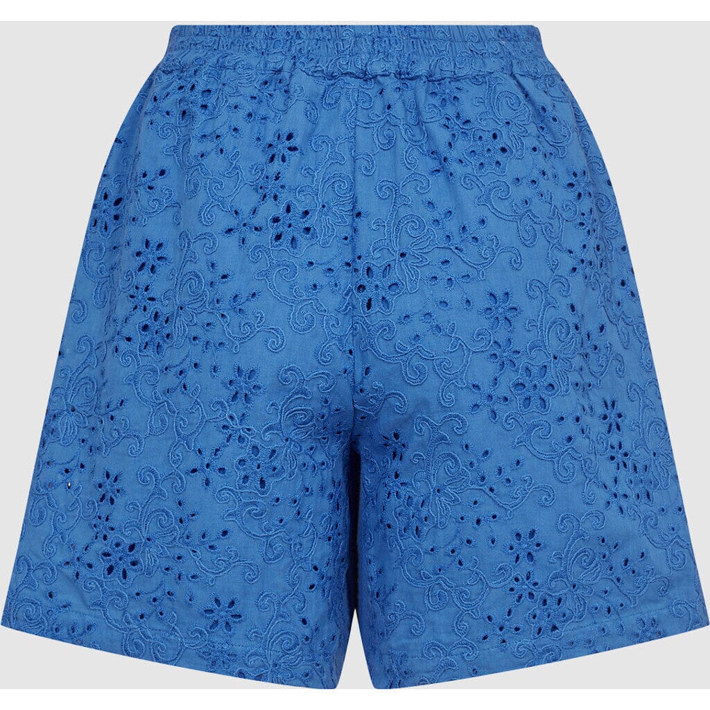 Blå shorts fra Moves By Minimum med brodert blomstermønster. Shortsen har en rett passform og går til midten av låret. Stoffet er laget av 100 % ren bomull.