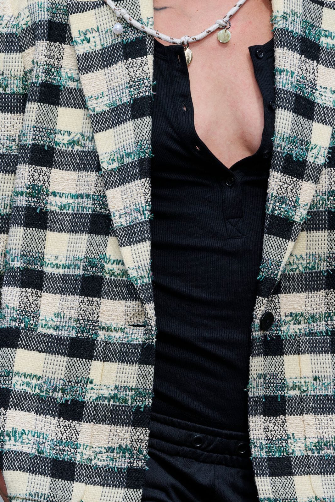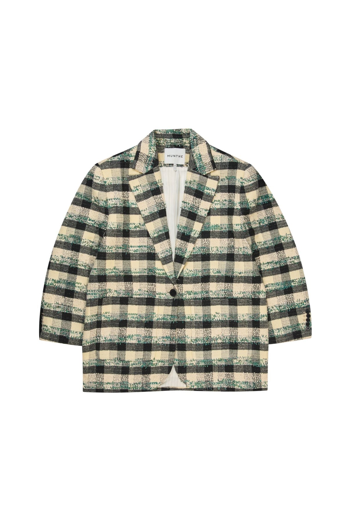 Rutet blazer fra Munthe i svart, krem og hvit. Blazeren har en lett oversized passform og er laget av myk, vevd kvalitet med 53 % polyester, 33 % akryl og 14 % ull.