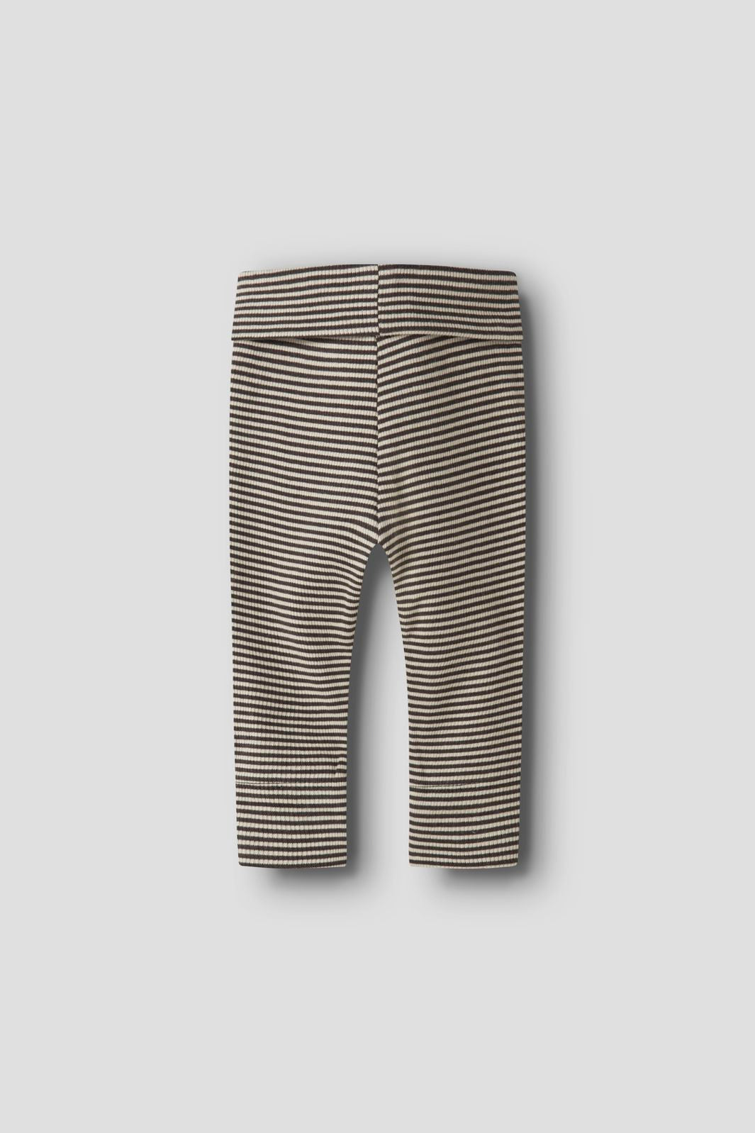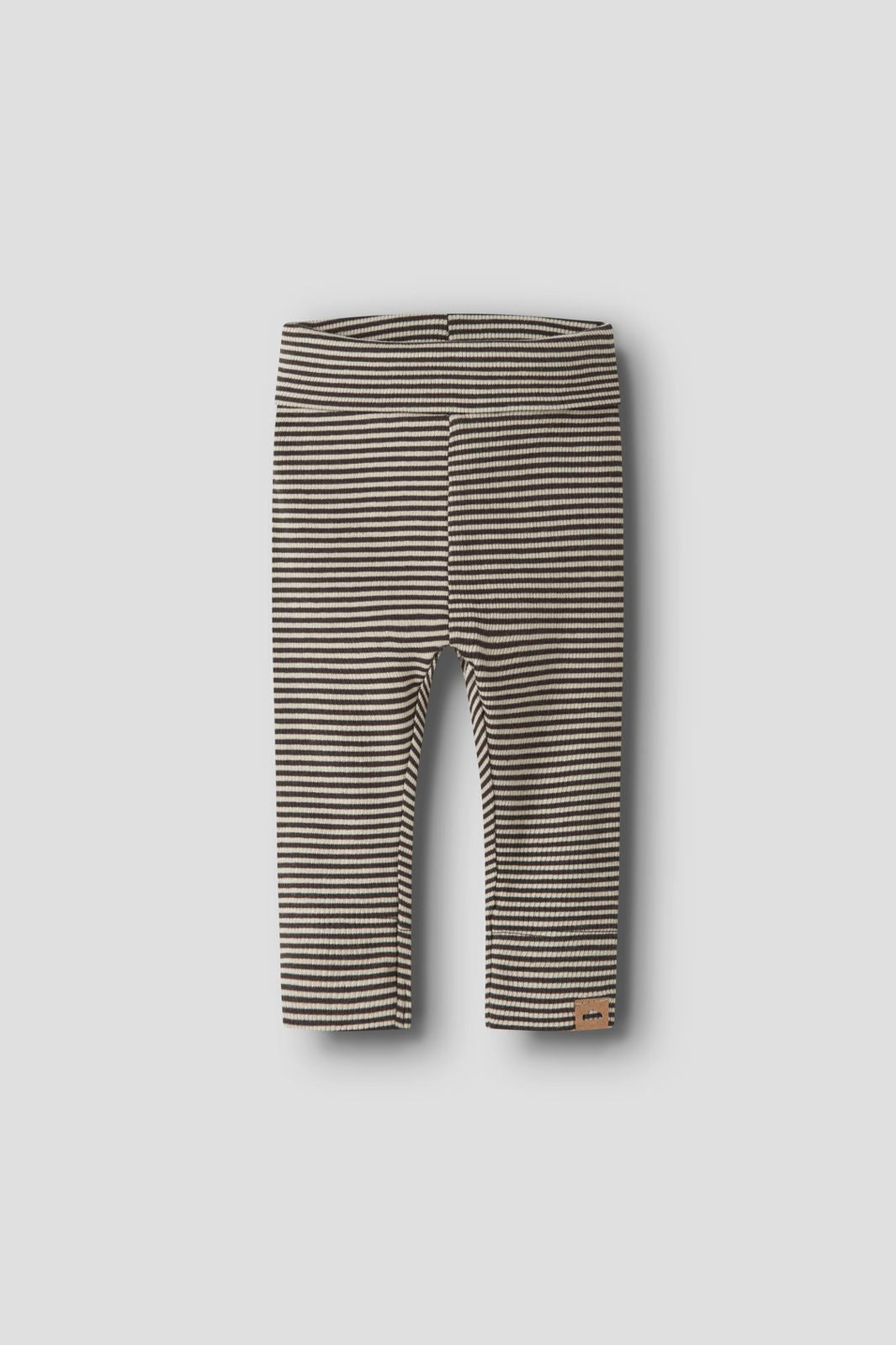 Lange underbukser fra Name It i ribbestrikk med striper i beige og brune nyanser. Buksene har en elastisk midje og en regular fit-passform med en liten brun merkelapp ved benet.