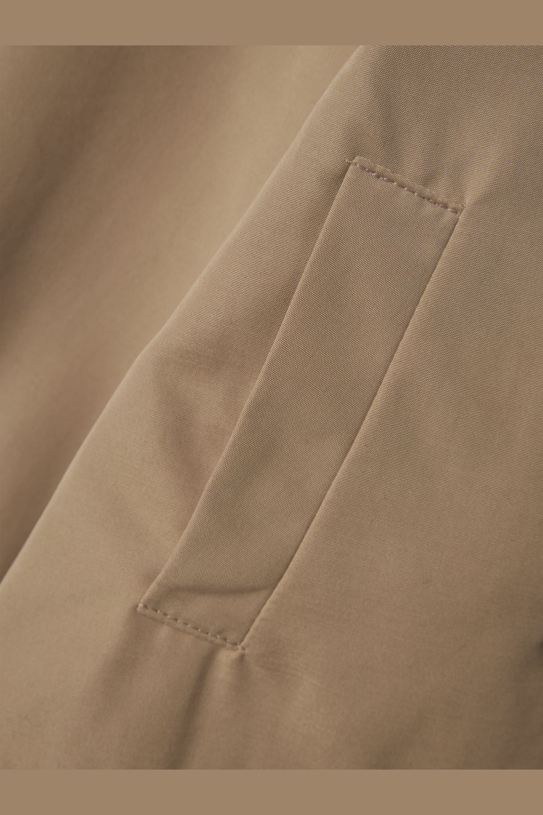Den korte modellen når til hoften og gir god bevegelsesfrihet. Den beige fargen gjør jakken lett å kombinere med forskjellige klær.