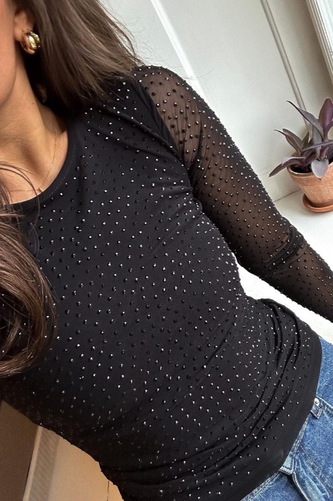 Neo Noir Basira Stone Mesh Blouse Farge: Black