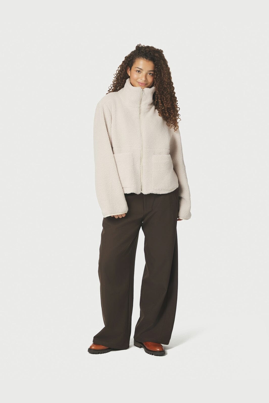 Teddykåpe fra Neo Noir i en myk elfenbensfarget nyanse. Kåpen har høy krage og en løs passform som passer både hjemme og til hverdags.