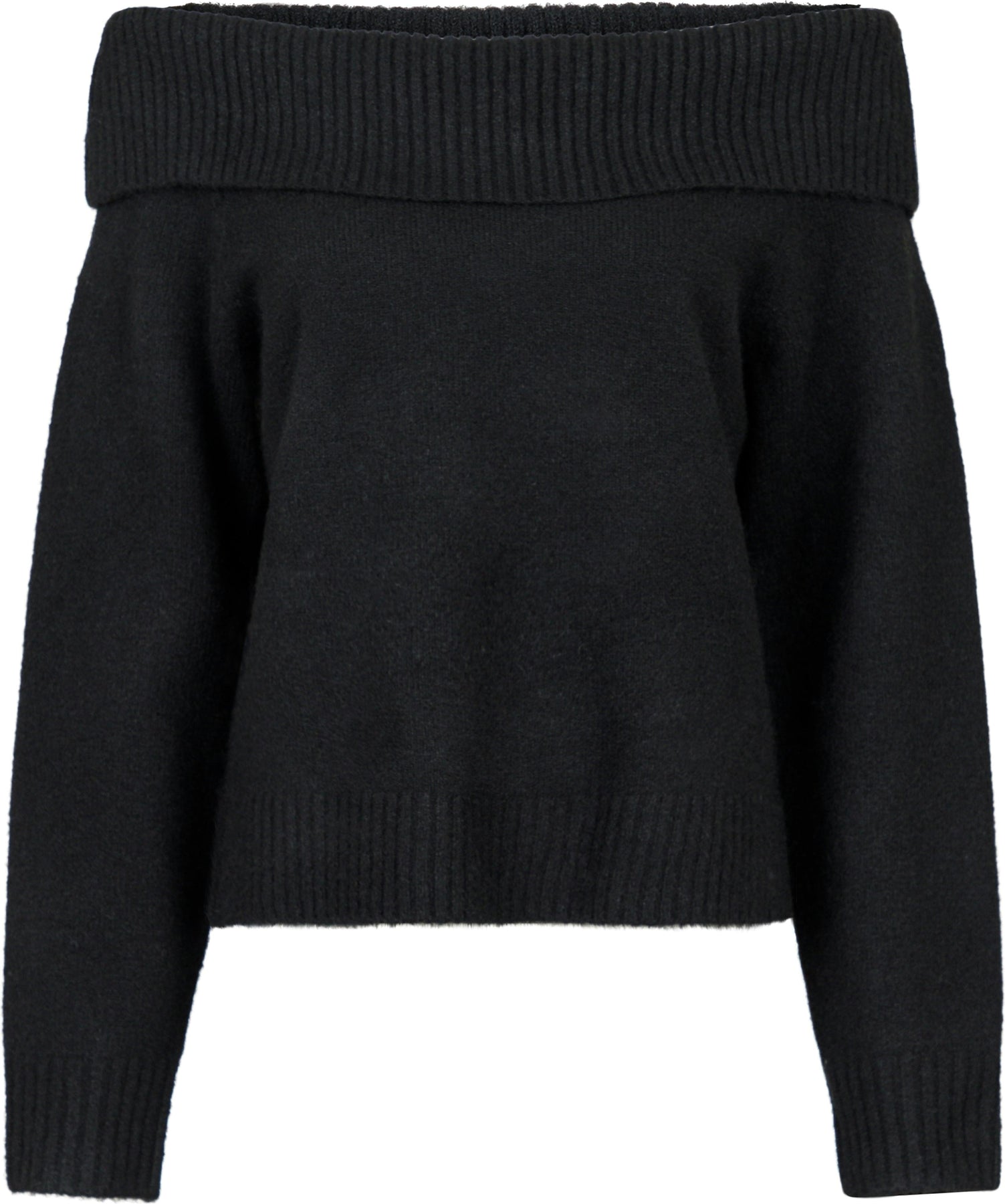 Svart strikkegenser fra Neo Noir med off-shoulder-design. Genseren har en løs passform og lange ermer som gir god bevegelsesfrihet.