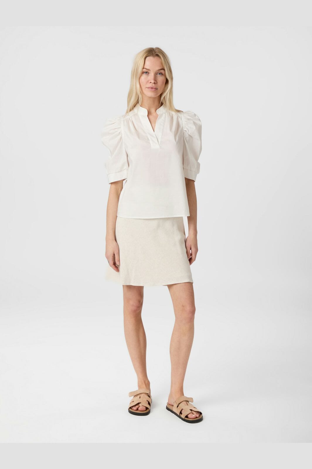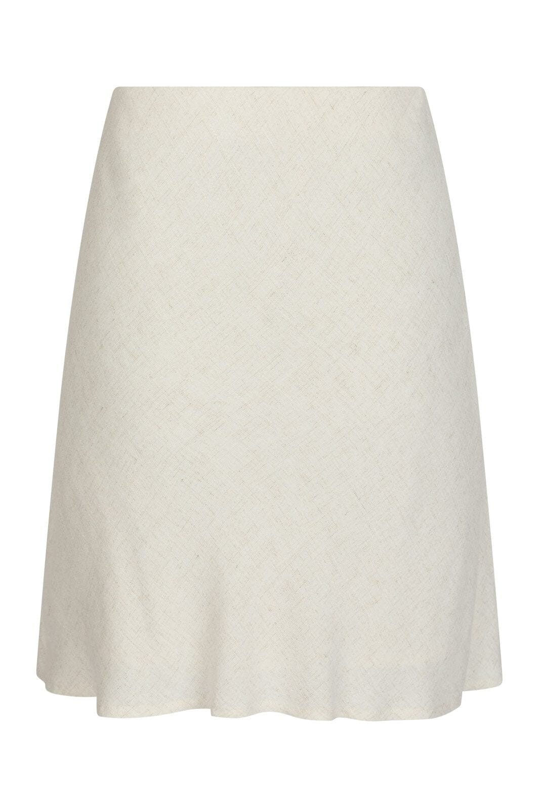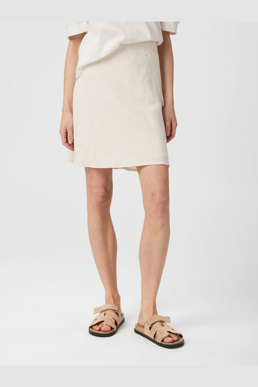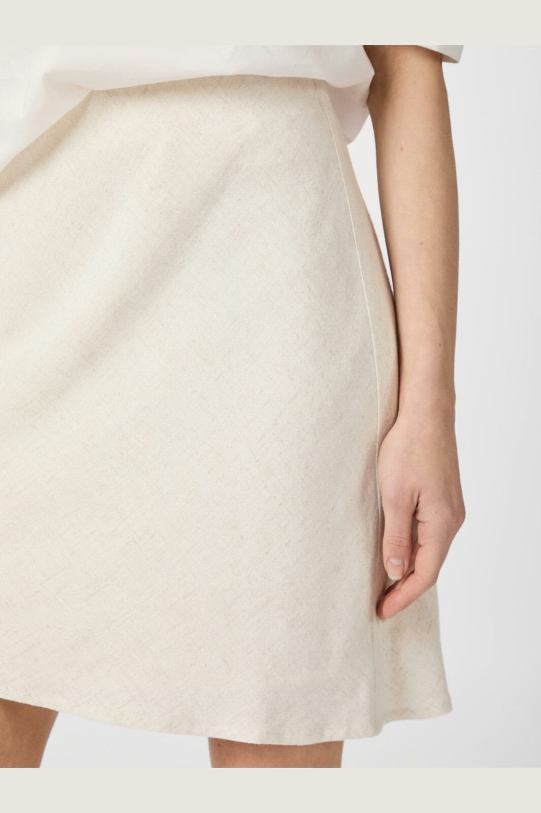 Kort skjørt fra Neo Noir i naturfarget linblanding. A-formet snitt med løs passform og rund kant nederst.