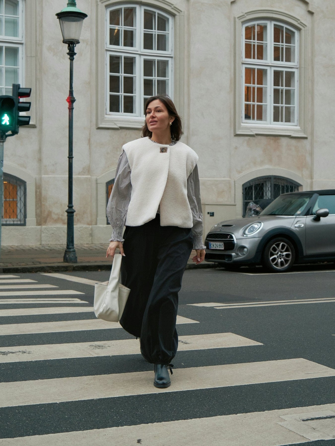 Bluse fra Neo Noir i støvet brun med småmønstret rutete mønster. Blusen er laget av bomull og har volangdetaljer samt knappelukking i nakken.