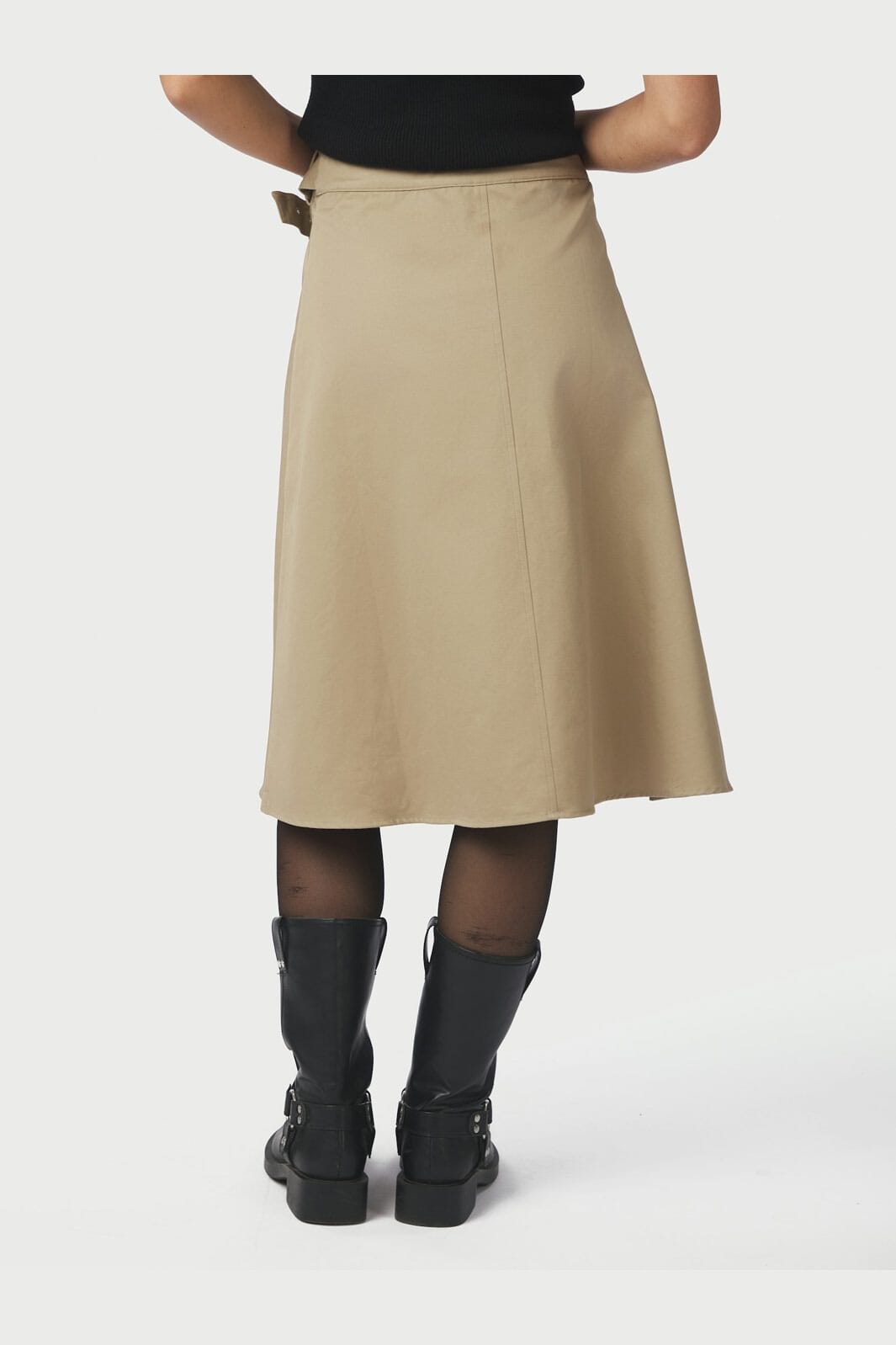 Twill-skjørt fra Neo Noir i taupe. Et knelangt skjørt med plissert design og høy midje. Sitter tett ved midjen og har en beltespennelukking i siden.