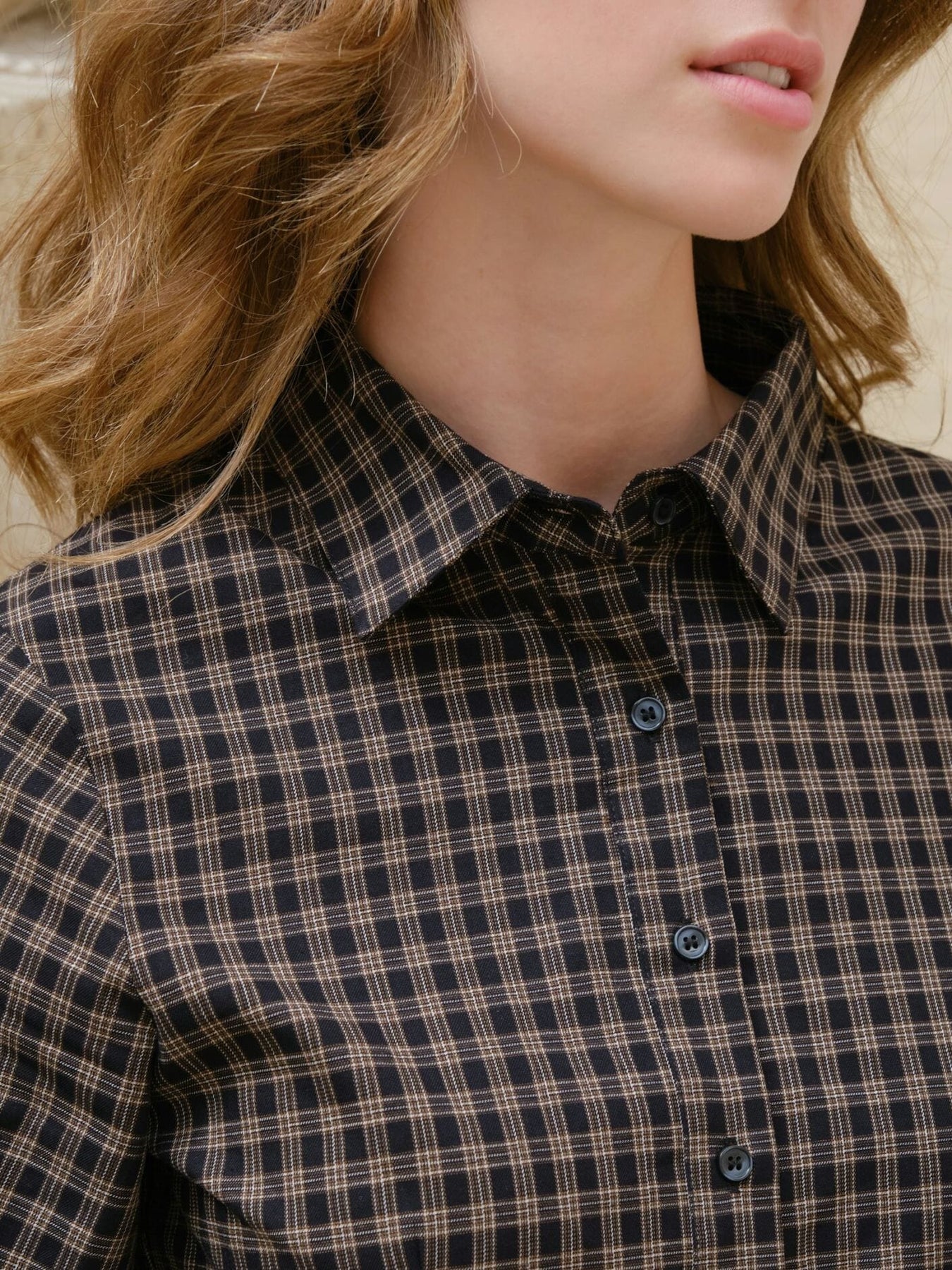 Rutete skjorte fra Neo Noir i svart og brun. Skjorten har en slim fit-passform og lange ermer med brede mansjetter.