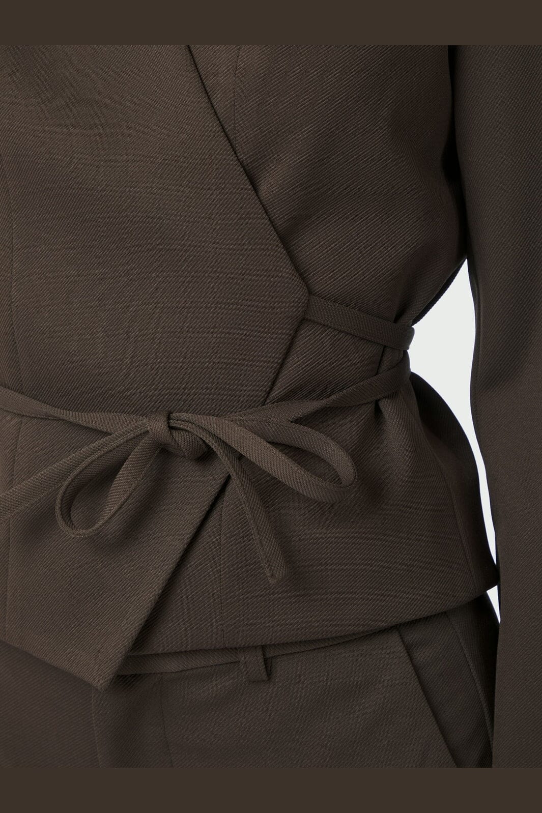 Mørkebrun bluse fra Neo Noir med omslagsdesign. Blusen har V-utringning og lange ermer. Knytebåndet i midjen gir mulighet for å tilpasse passformen.