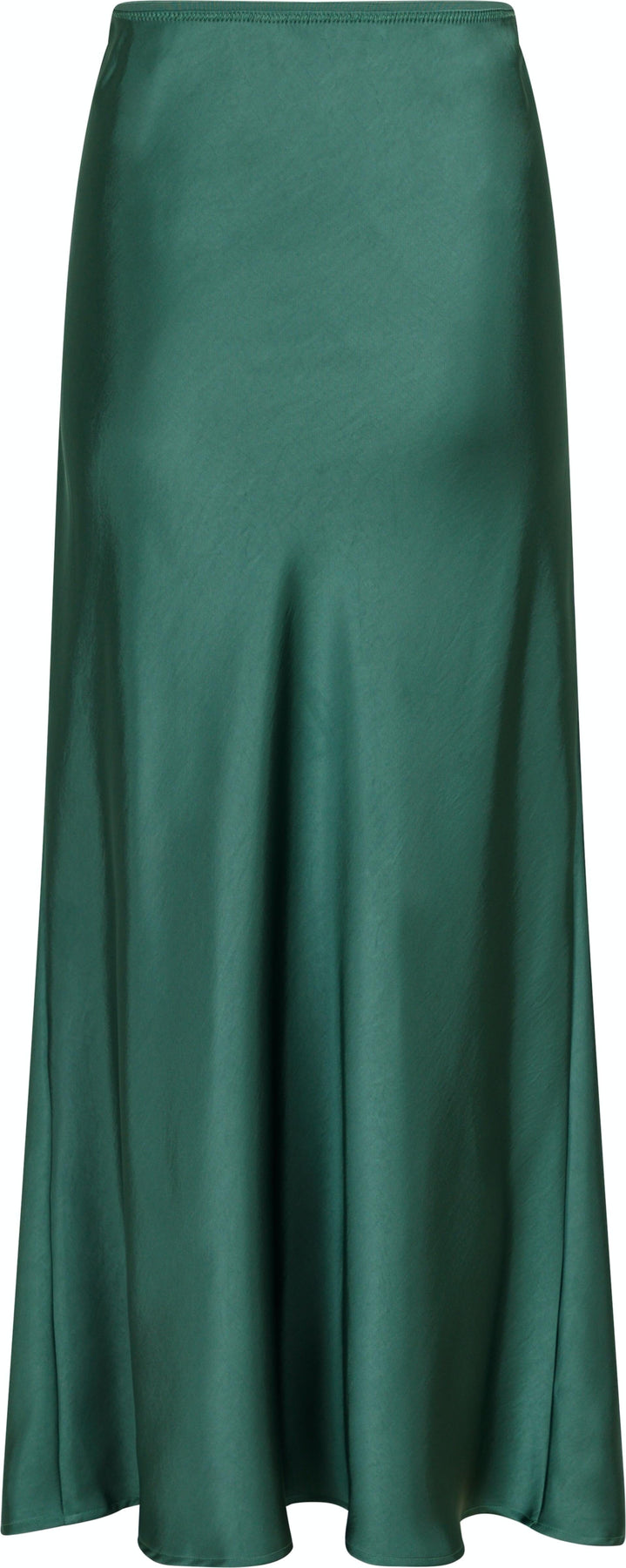Skoggrønn skjørt fra Neo Noir i myk satin. Den har en skrå skjæring og en lang lengde med et blankt uttrykk. Elastikken i livet gir en god passform.