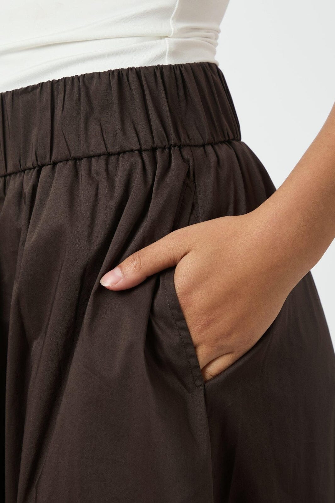 Cool skjørt i en deilig poplin med høy elastikk i midjen og lommer på siden, i midi lengde som stopper midt på leggen.