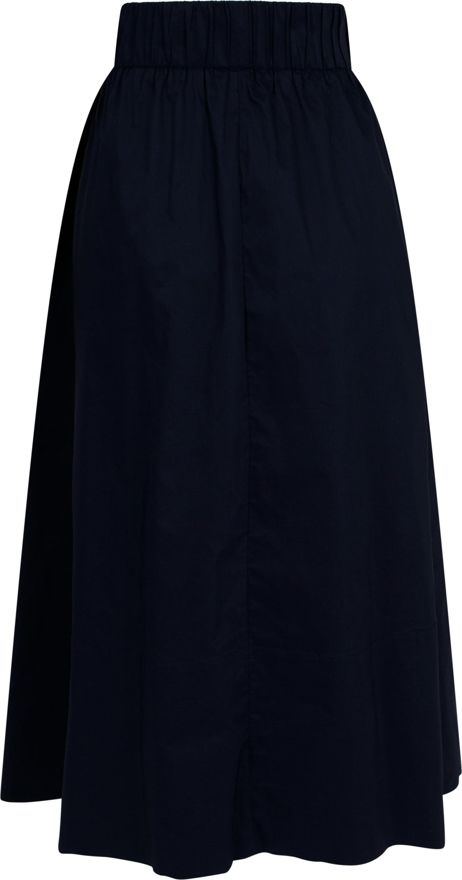 Sort poplin-skjørt fra Neo Noir med høy elastikk i livet. Skjørtet har praktiske lommer i siden og går til leggen. Det er laget av lett bomullspoplin med stretch.