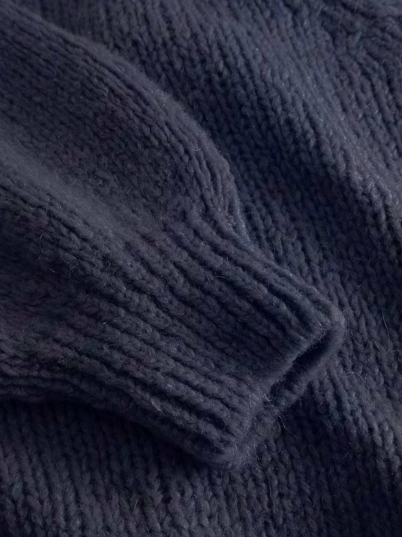 Mørkeblå cardigan fra Noella med strikket struktur og lange ermer. Den løse passformen gjør den enkel å style med forskjellige lag klær under.