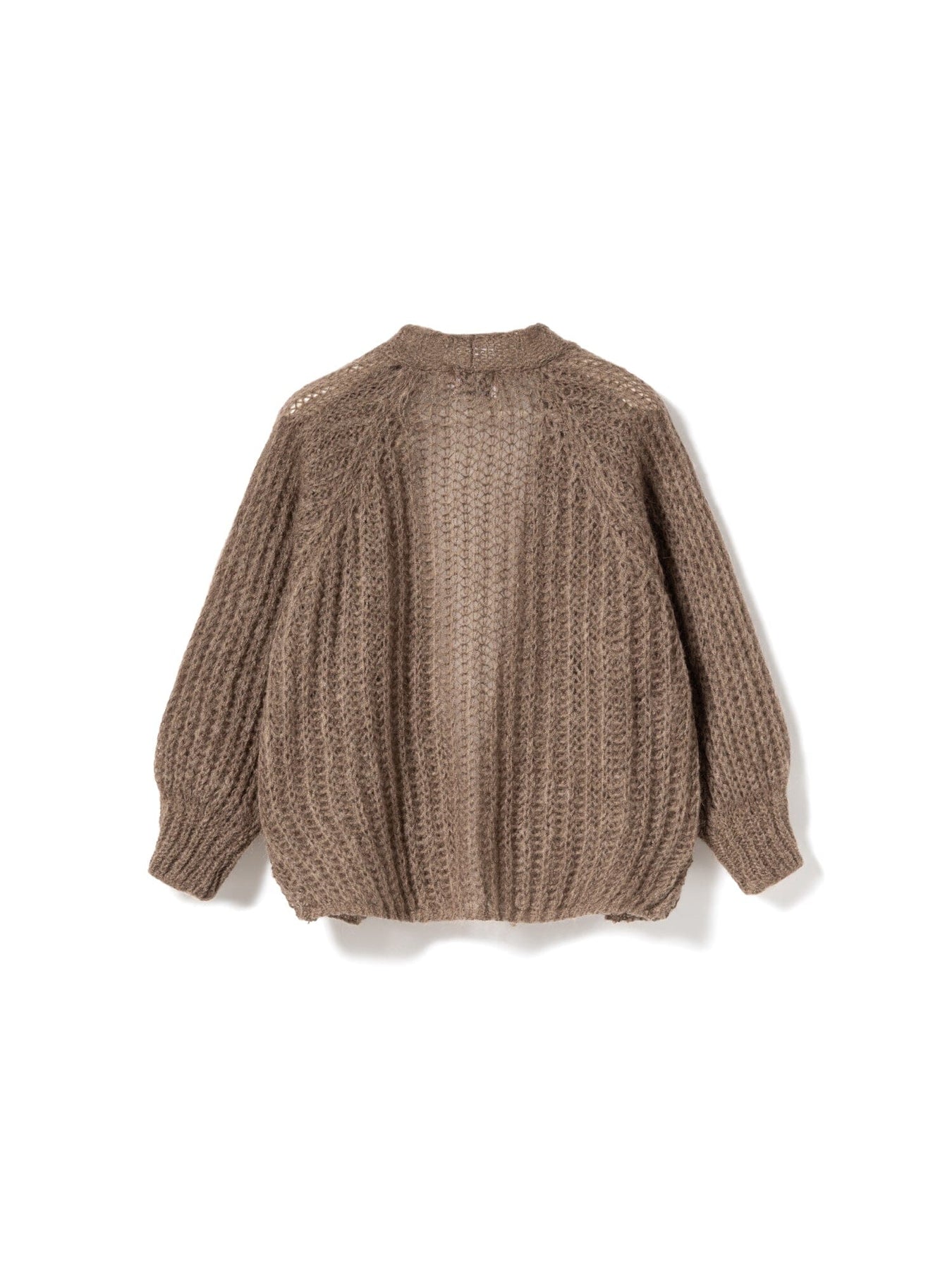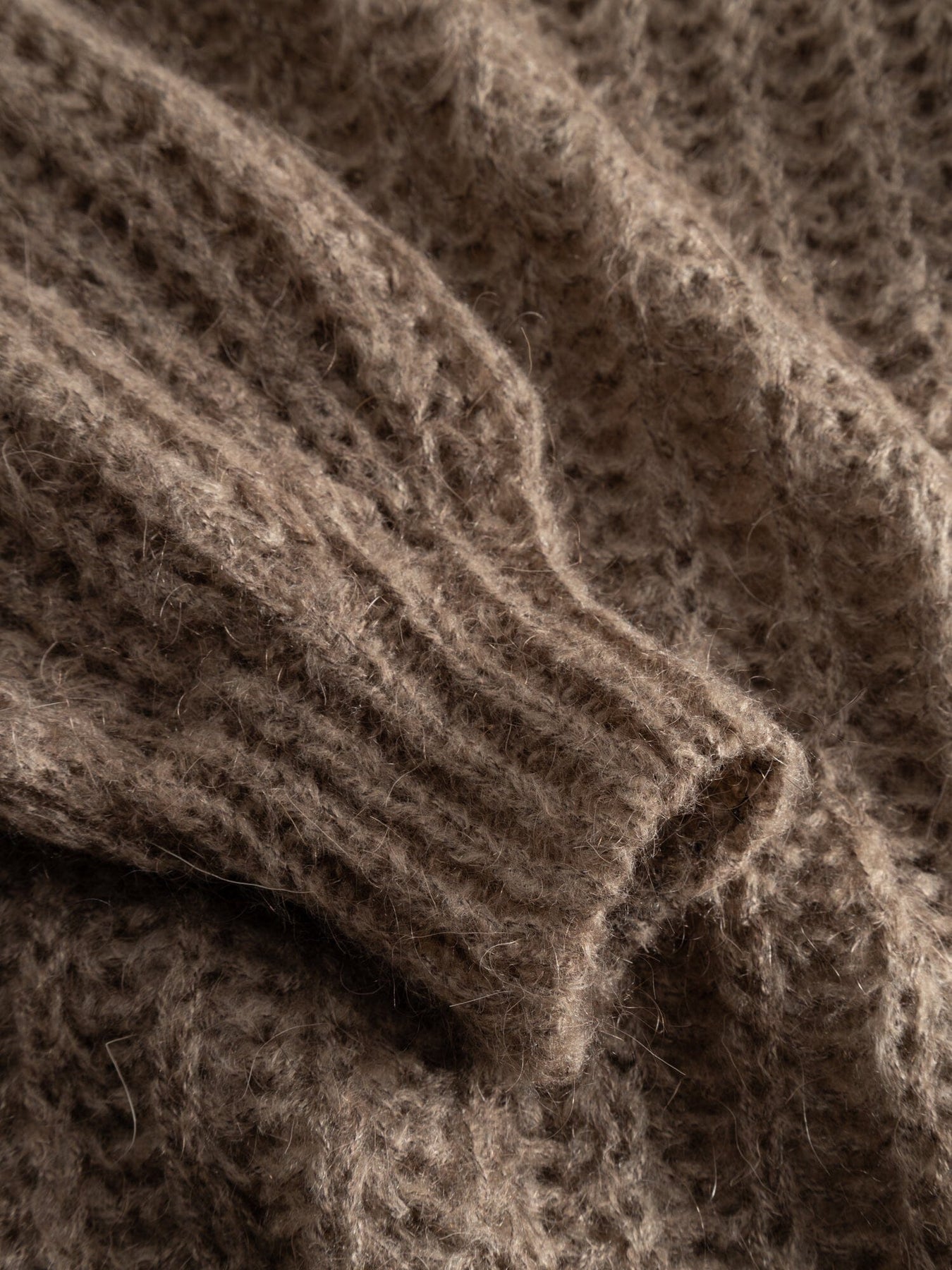 Brun cardigan fra Noella med løs passform og lange ermer. Strikket i en myk blanding av mohair, akryl og nylon med en luftig struktur.