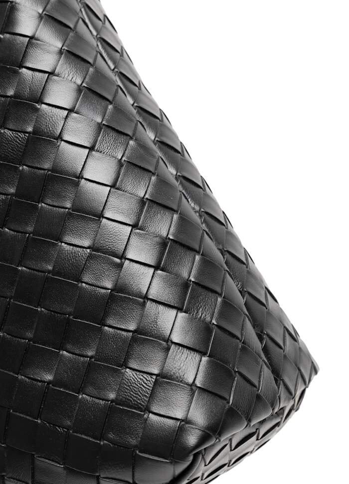 Svart veske fra Noella med flettet overflate og romslig interiør. Vesken har innvendige lommer for organisering av innholdet og lukkes med glidelås.
