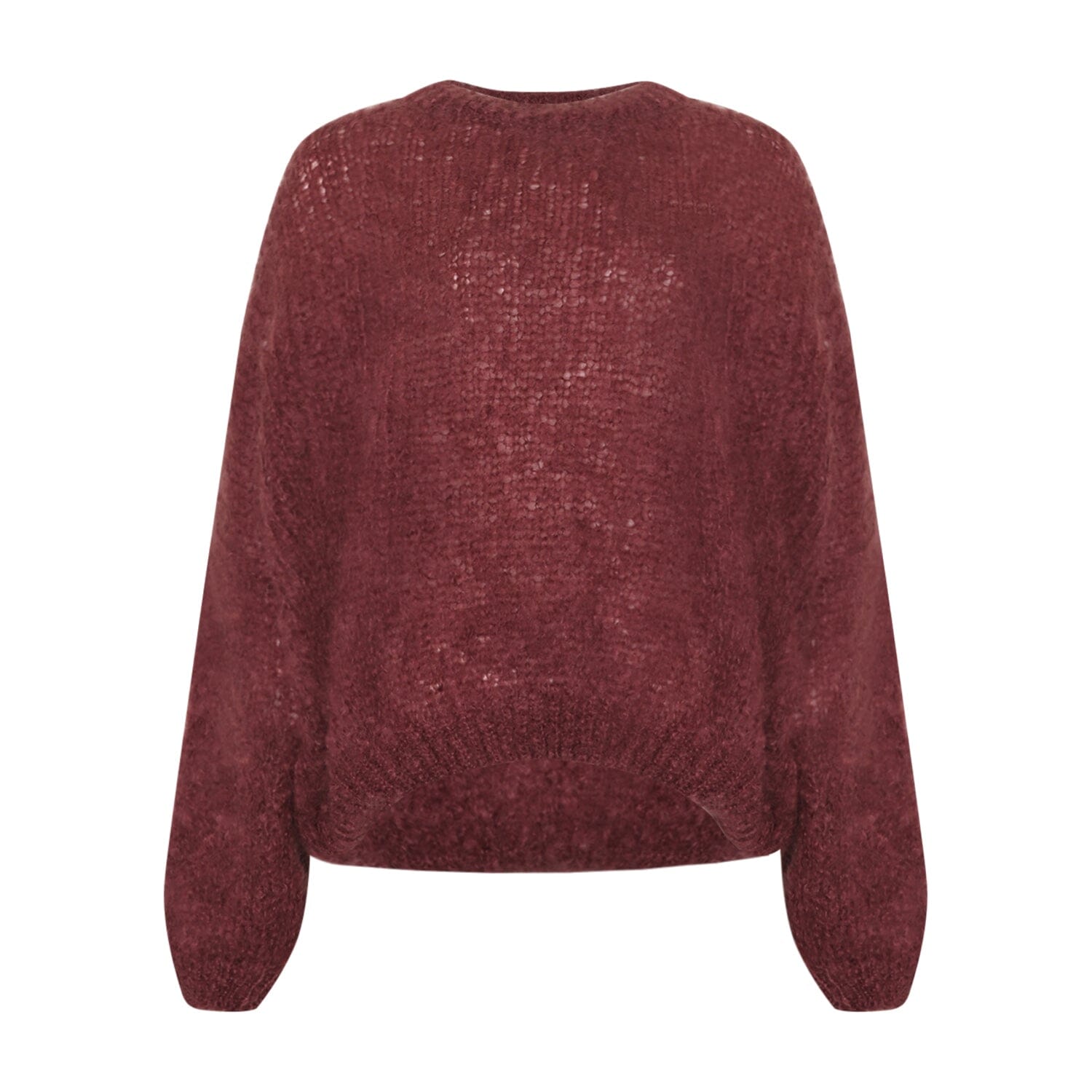 Rustfarget strikkegenser fra Noella med høy hals og oversized passform. Den myke mohairblandingen gir genseren en fluffy tekstur og en varm følelse mot huden.