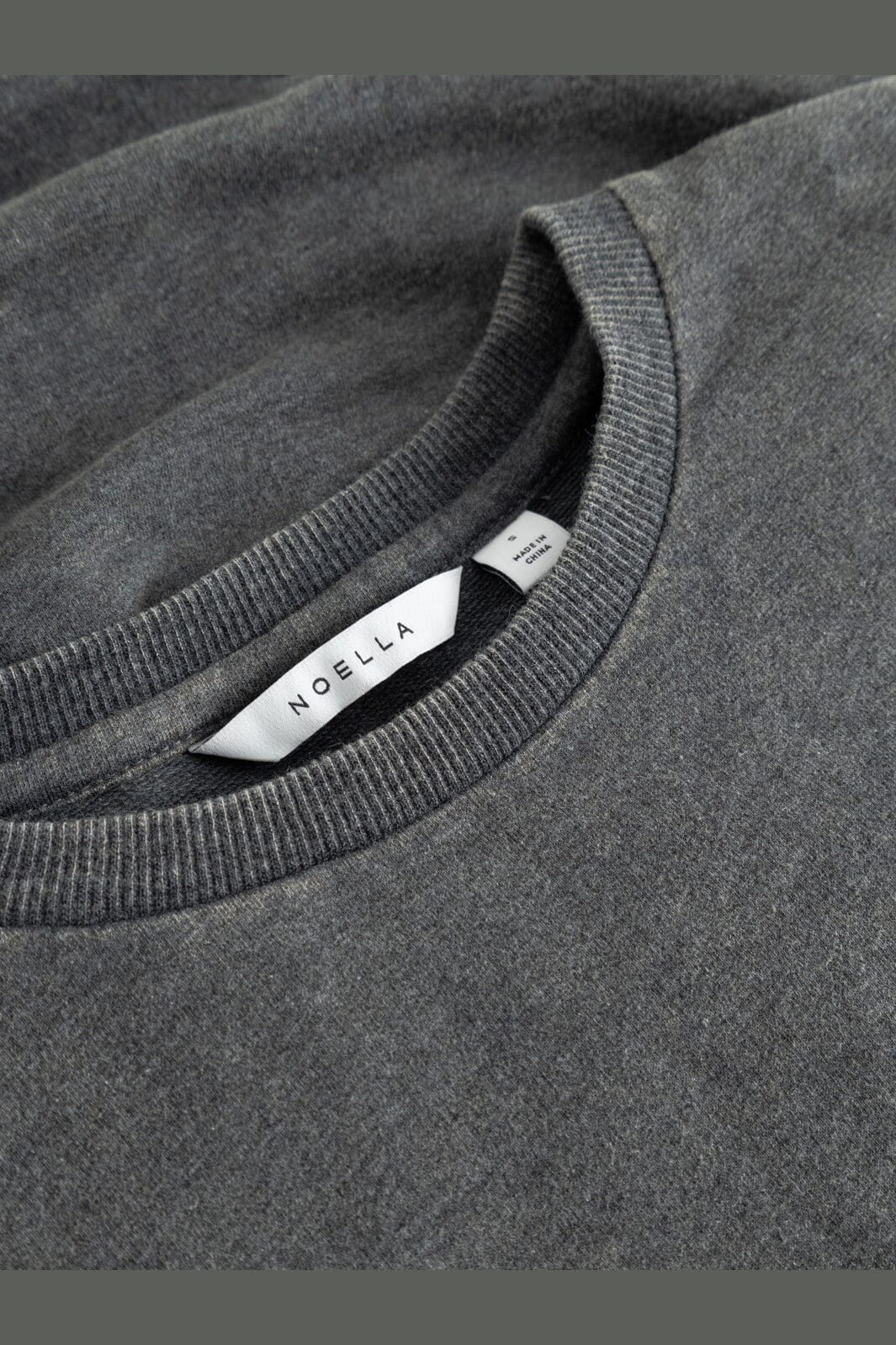 Grå kjole fra Noella, laget av 100 % bomull i myk sweatkvalitet. Kjolen har en gråvasket effekt og et kortermet design.