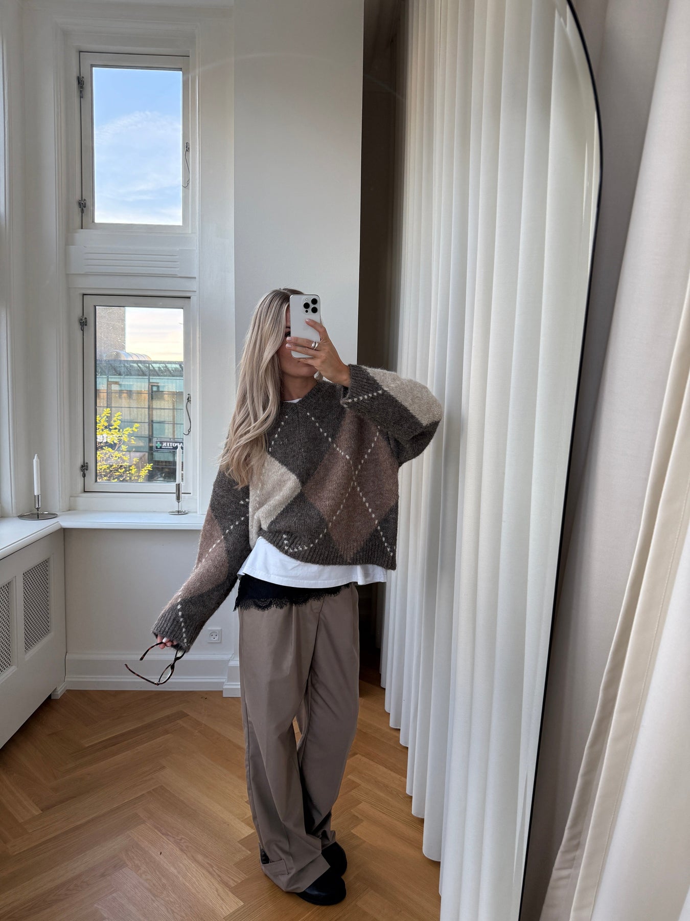 - Argyle-mønster i brune og beige nyanser