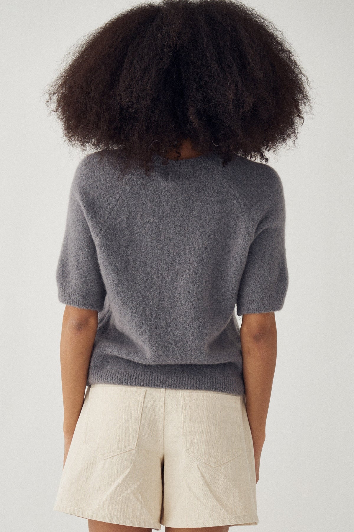 Kortermet strikkegenser fra Noella i mørk grå melert. Laget av en blanding med superfin alpakka, polyamid, ull og elastan. Passer til hverdagsbruk og hjemme.