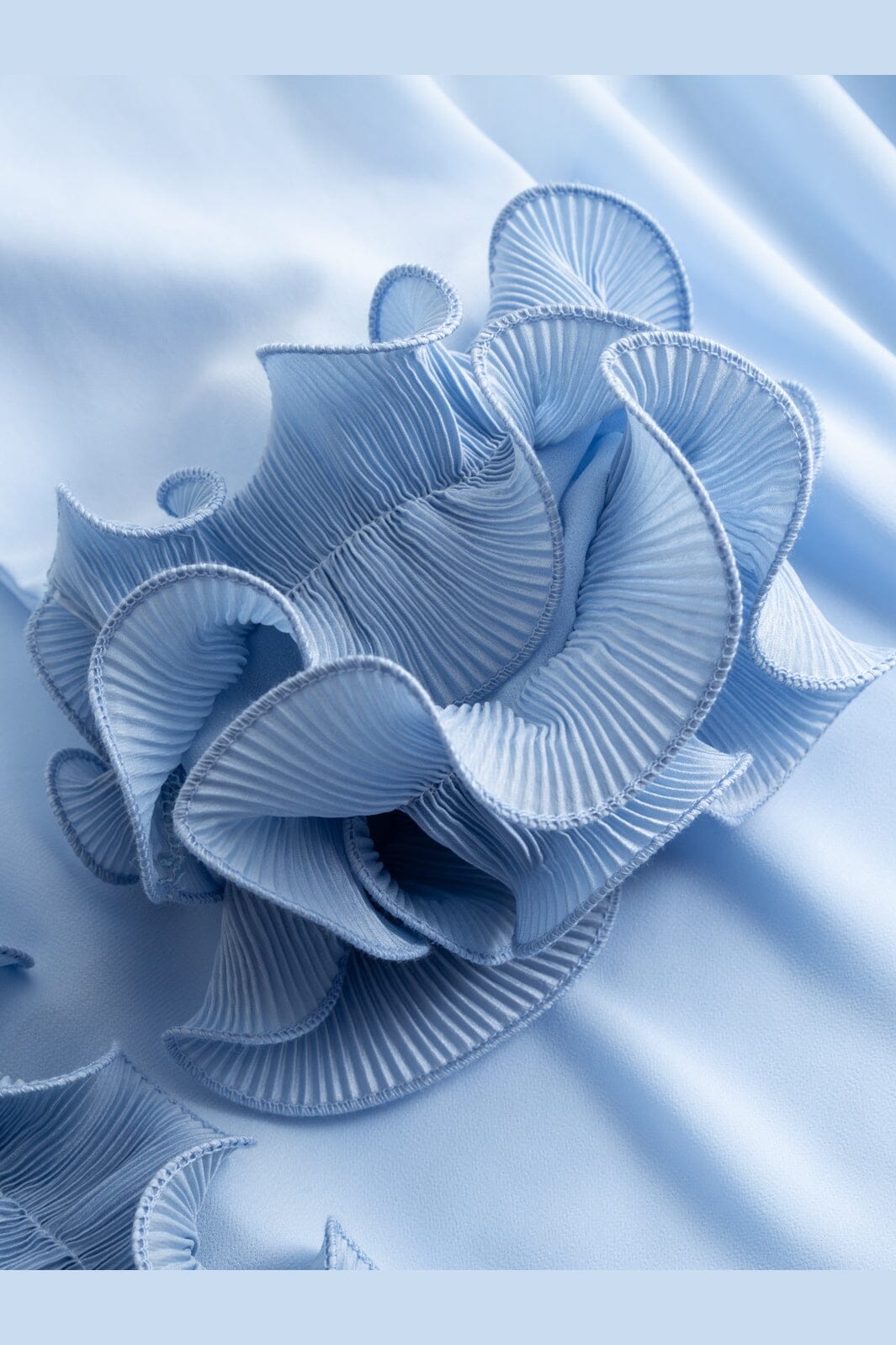 - Krøllete, plisserte bånd ved ermer og kant