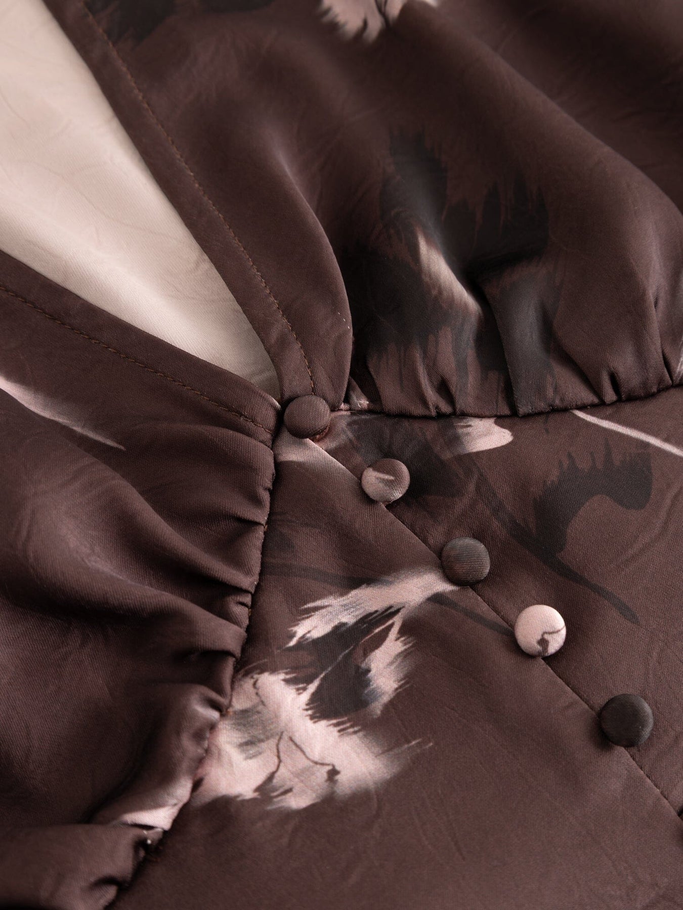Bluse fra Noella med blomsterprint i bordeaux og lyserøde nyanser. Blusen passer til både avslappede hverdager og festlige anledninger.