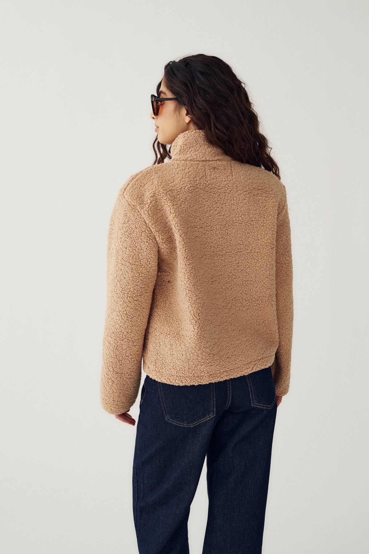 Kort jakke fra Noella i mykt teddystoff og en lys kremfarge. Jakken passer både til avslappet bruk hjemme og til en casual hverdagsstil.