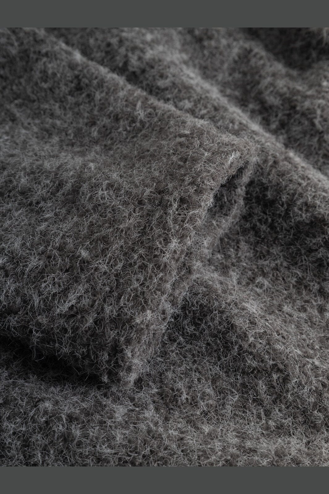 En jakke fra Noella i mørkegrå melert polyester. Jakken har en rund halsutskjæring og lukkes med knapper foran.