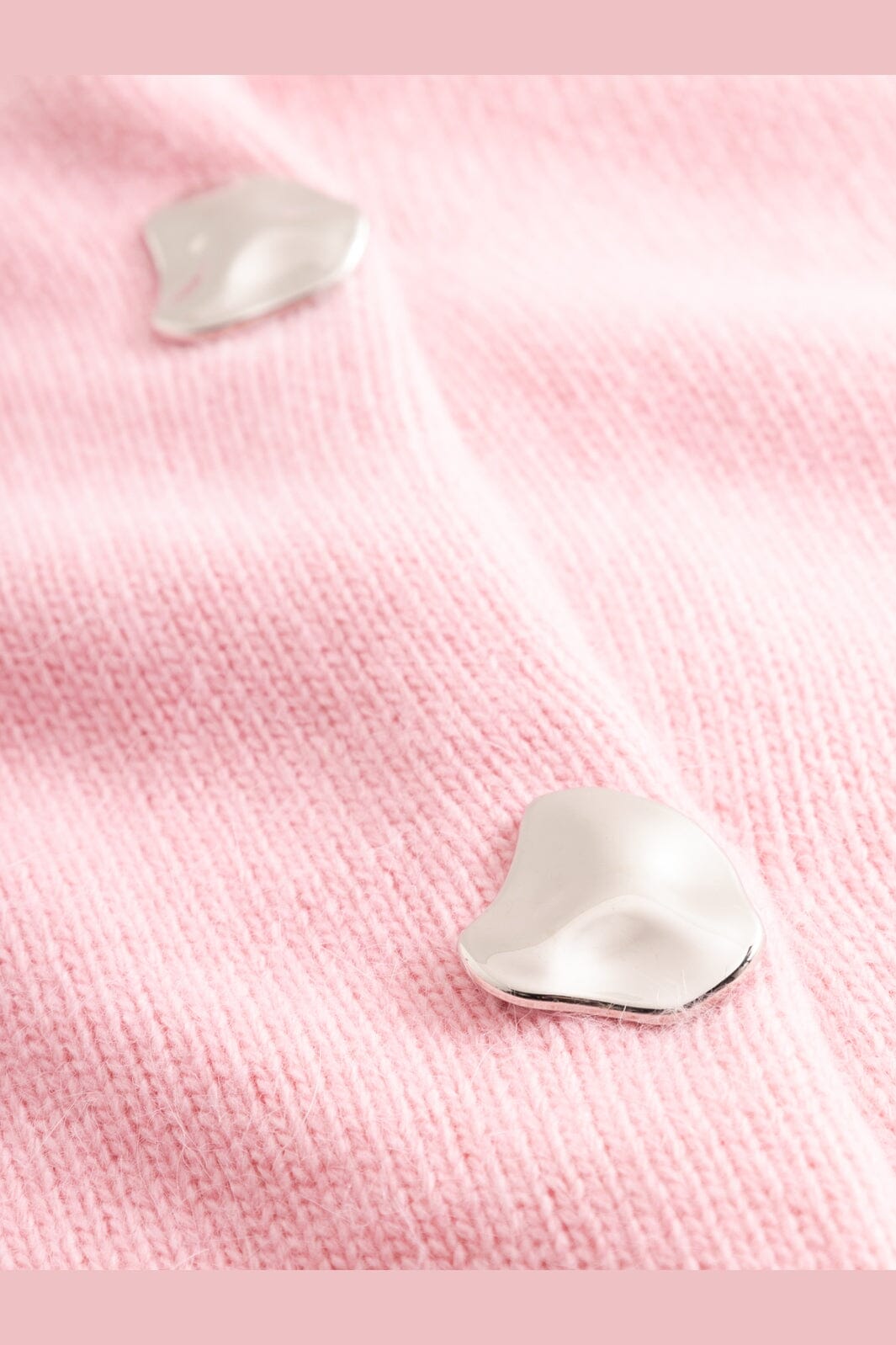 Strikkecardigan fra Noella i babyrosa. Laget av 70% nylon og 30% angora, som gir en myk og varm tekstur.