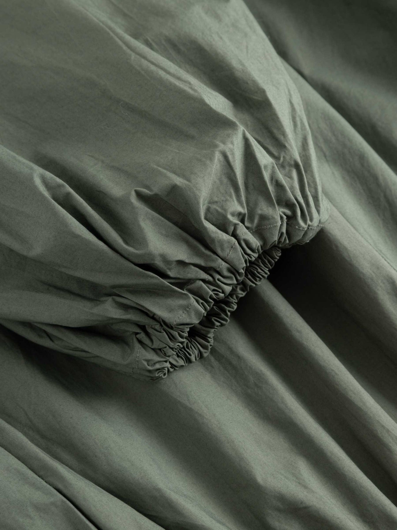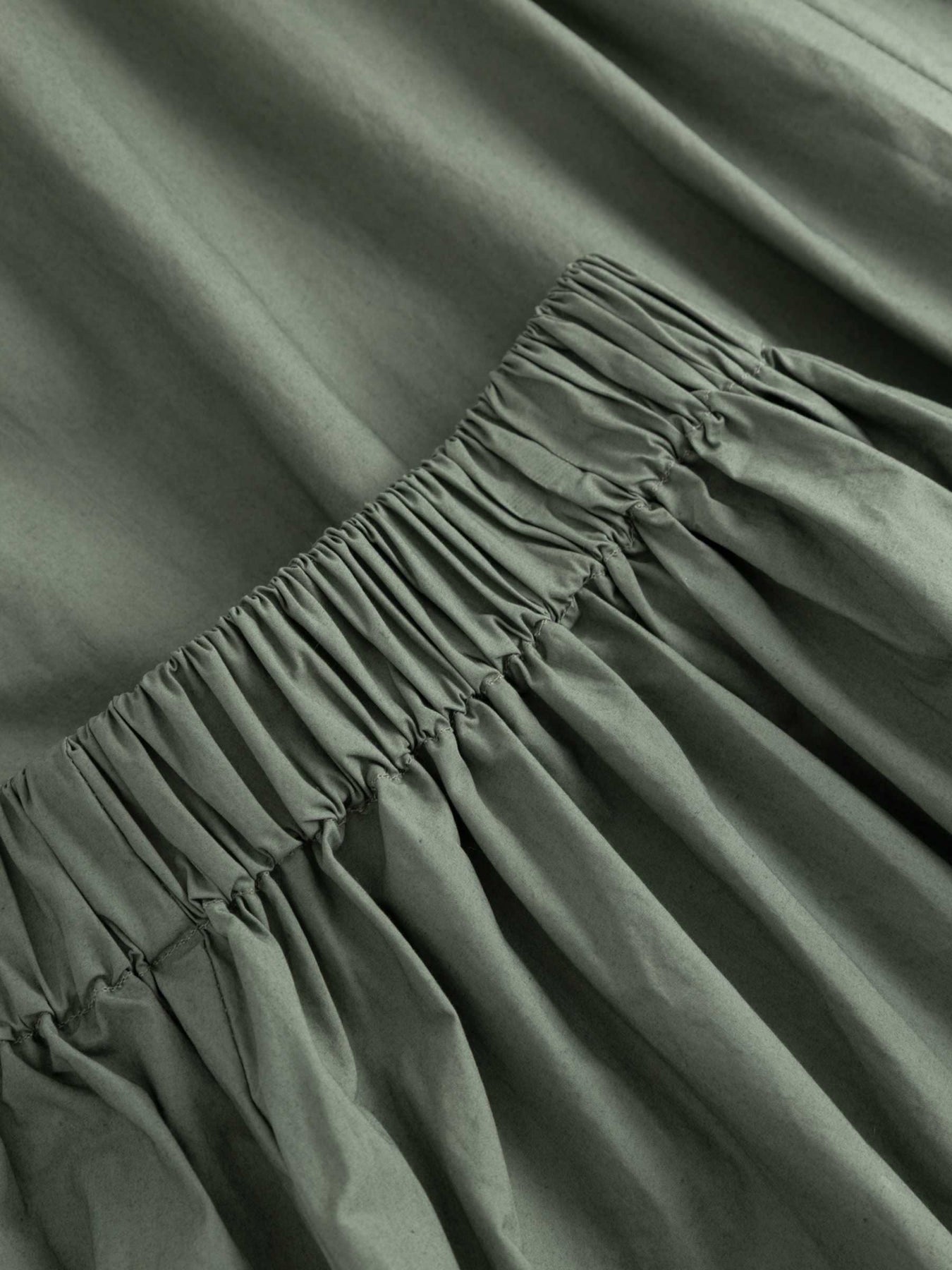 Grønne bukser fra Noella, laget av 100 % bomull. Buksene har høyt liv, løs passform og strikk ved anklene.