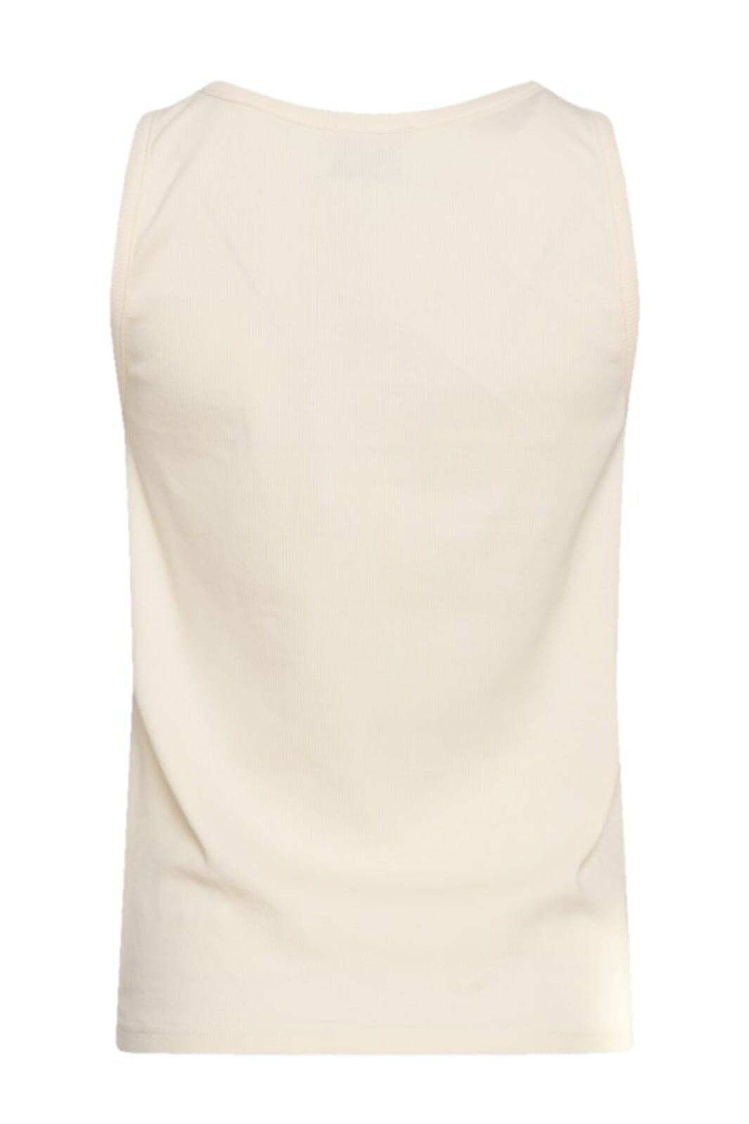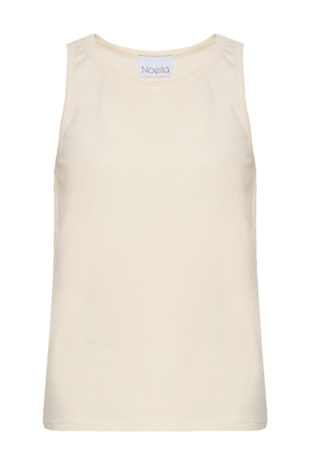 Cremefarget tanktop fra Noella med rund hals og ribbet tekstur. Den tettsittende toppen har et enkelt design med rene linjer og en nøytral farge som er lett å style.