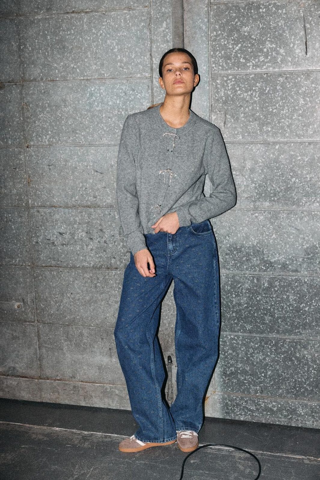Noisy May Nmbrayana L/S Bow Trim Knit Cardigan Farge: 4903272 Ultimate Grey Sequin Bow