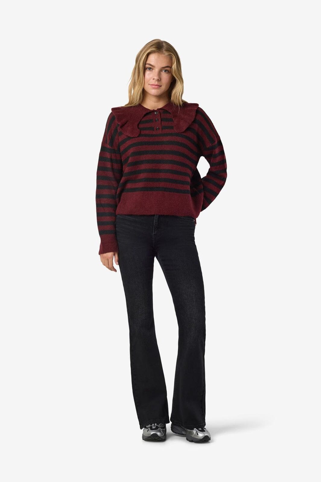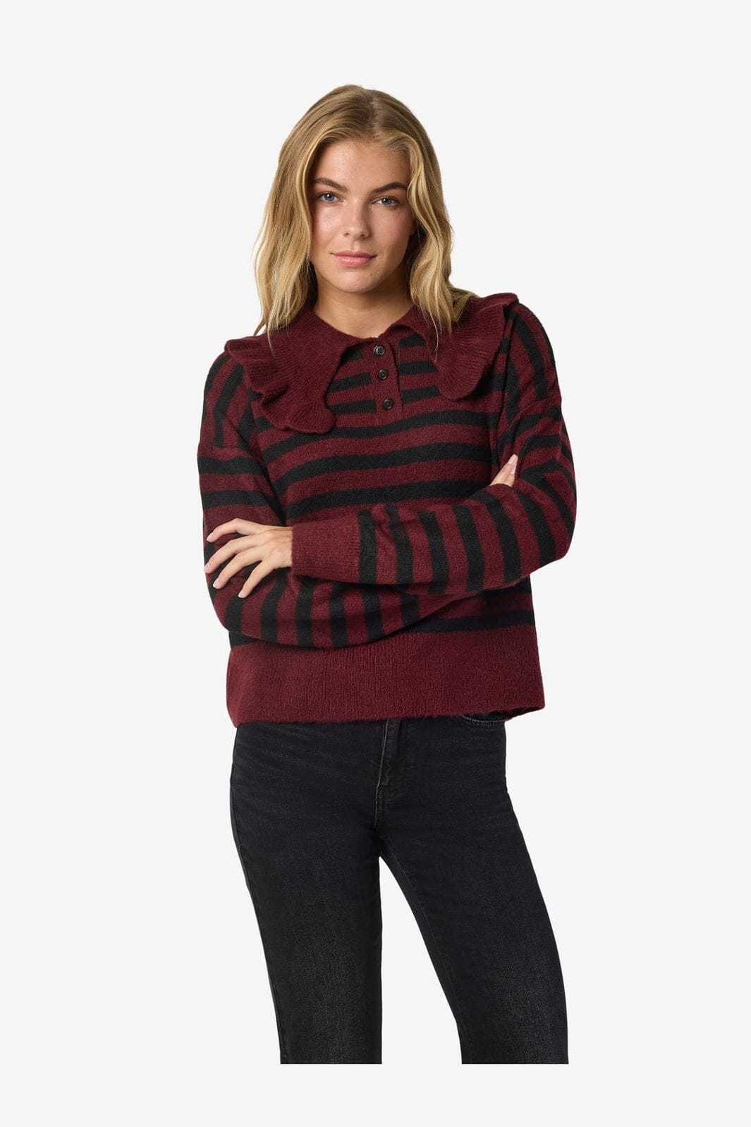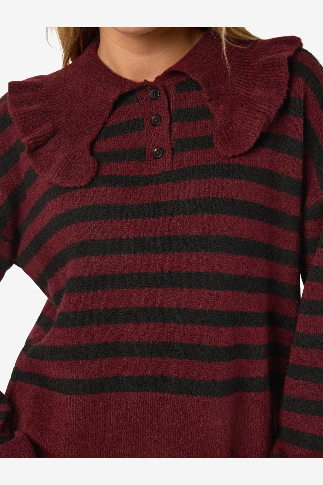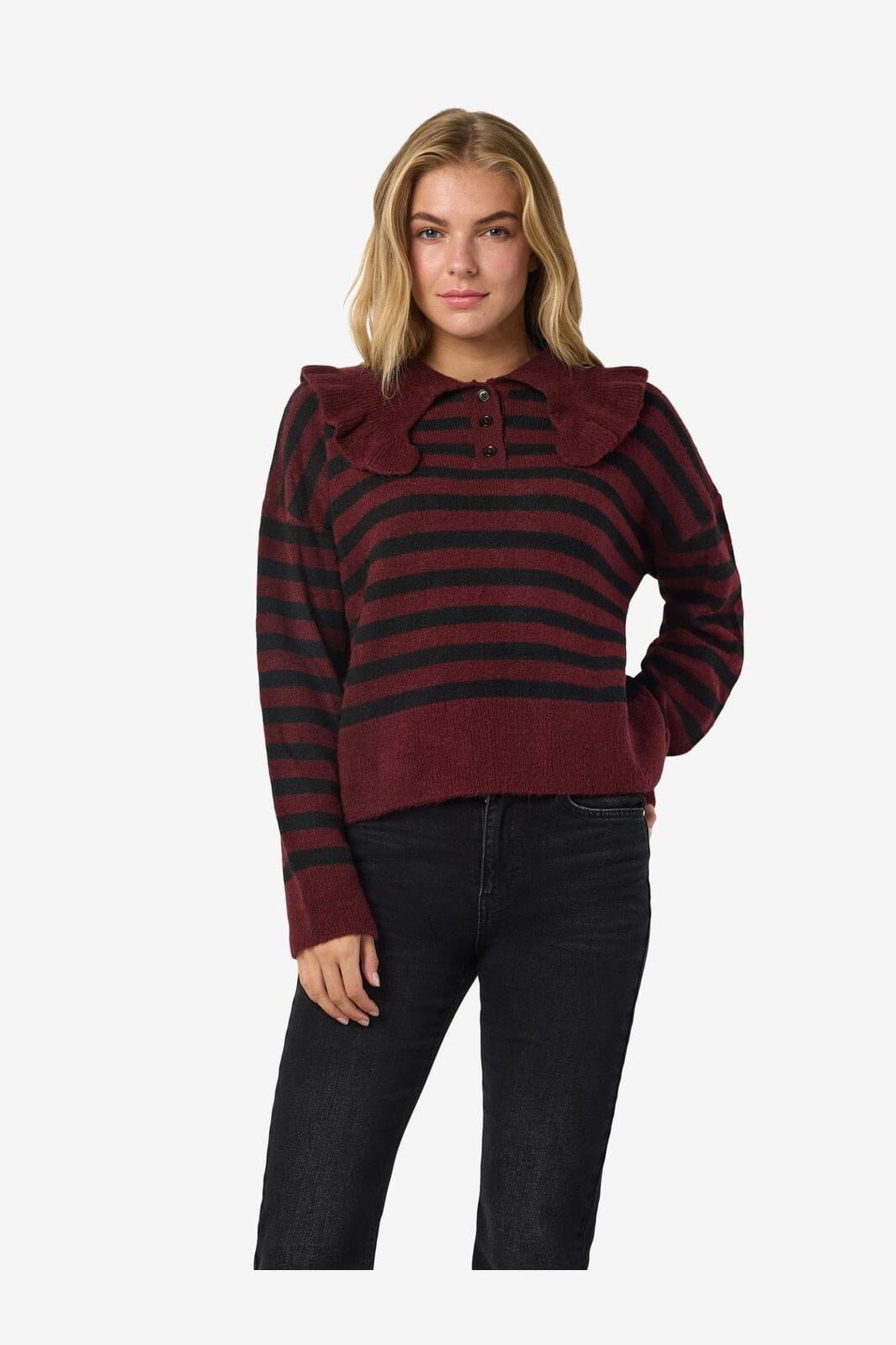Noisy May Nmbrooke L/S Frill Collar Knit Farge: 4924582 Windsor Wine Black
