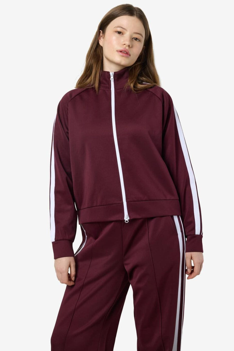 Noisy May Nmjenna L/S High Neck Zipper Farge: 4837290 Windsor Wine White Stripes