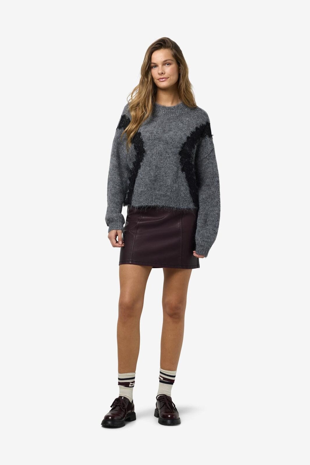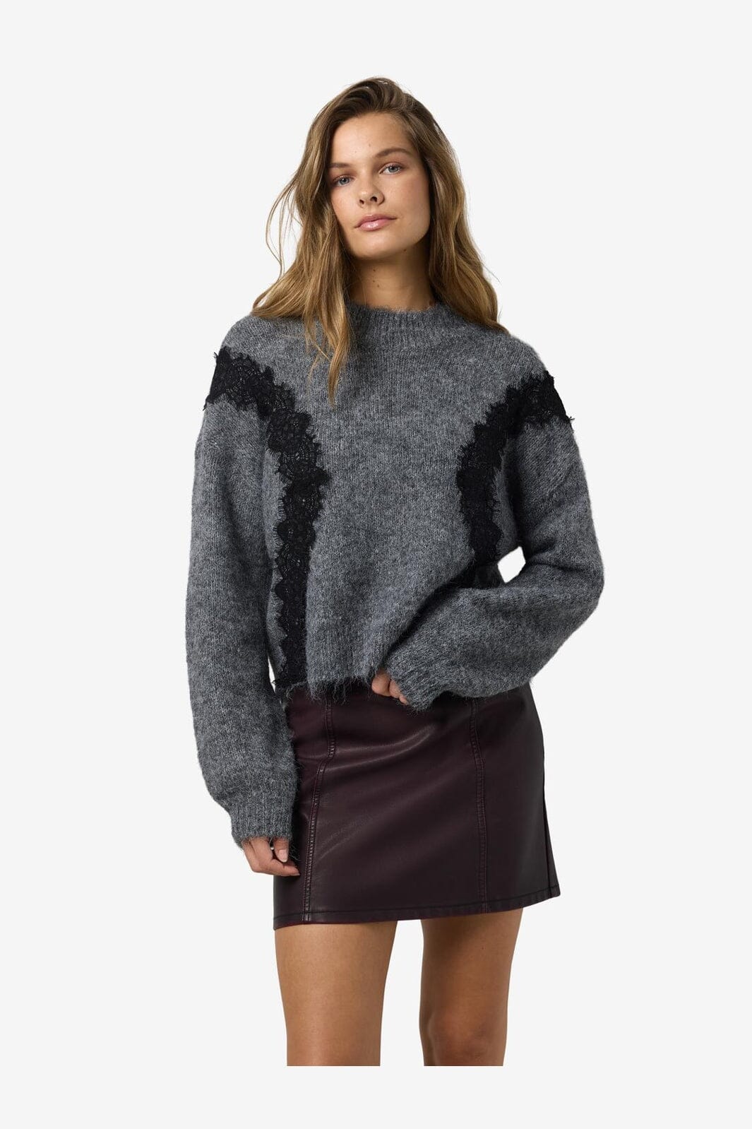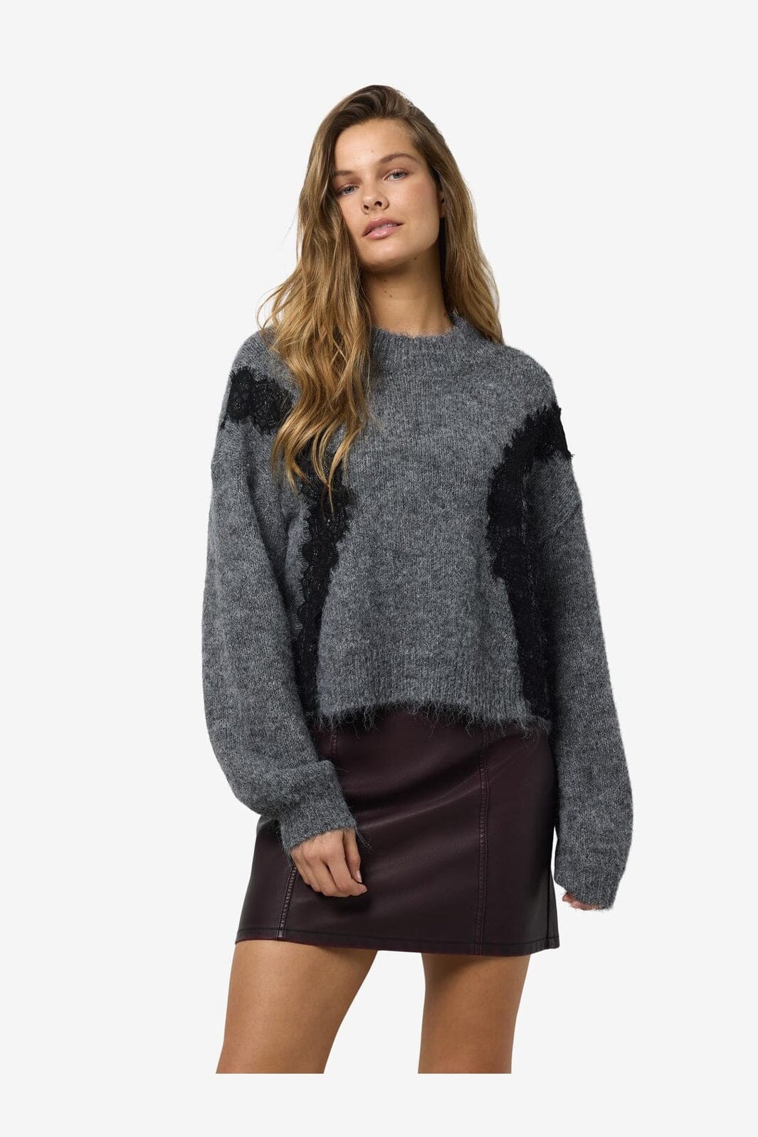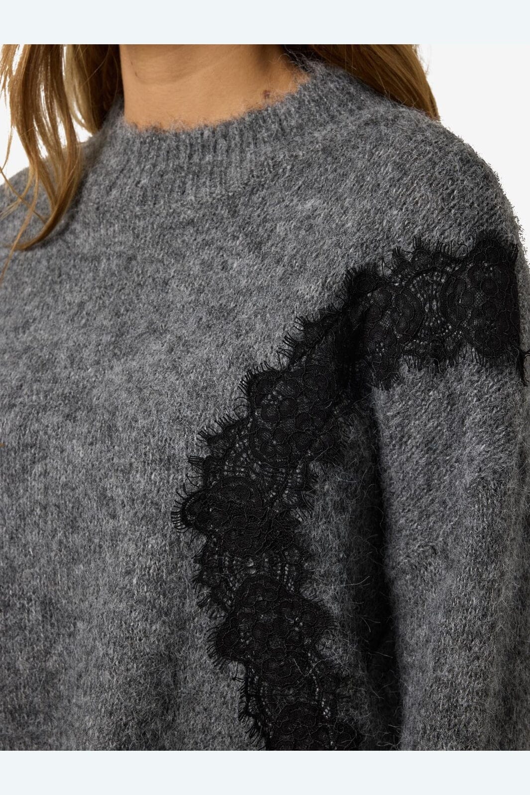 Noisy May Nmsutton L/S O-Neck Lace Knit Fwd Farge: 4986587 Dark Grey Melange Lace