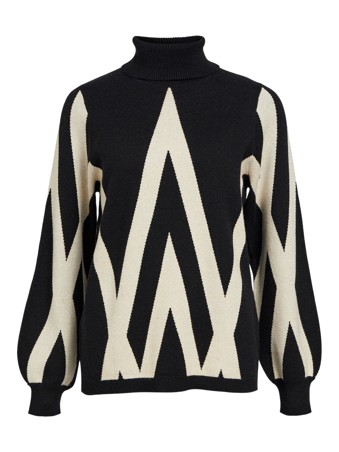 Object Objray L/S Knit Rollneck Pullover Farge: 4415476 Black Sandshell Graphic