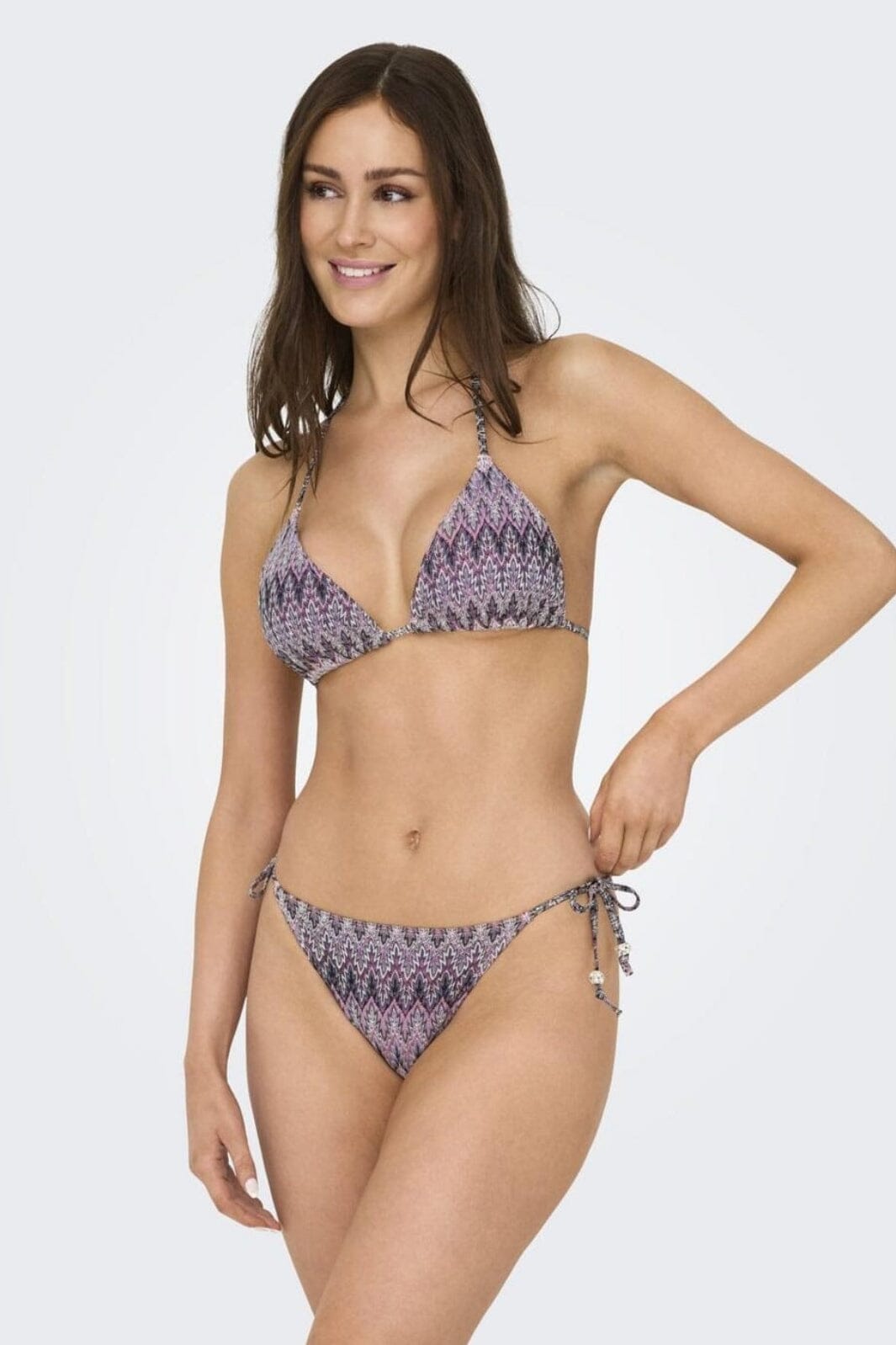 Bikinitrusser fra Only i lilla med et flerfarget trykk. Modellen har knytbånd i sidene og en justerbar passform. Det myke stoffet gir god bevegelsesfrihet både i og utenfor vannet.