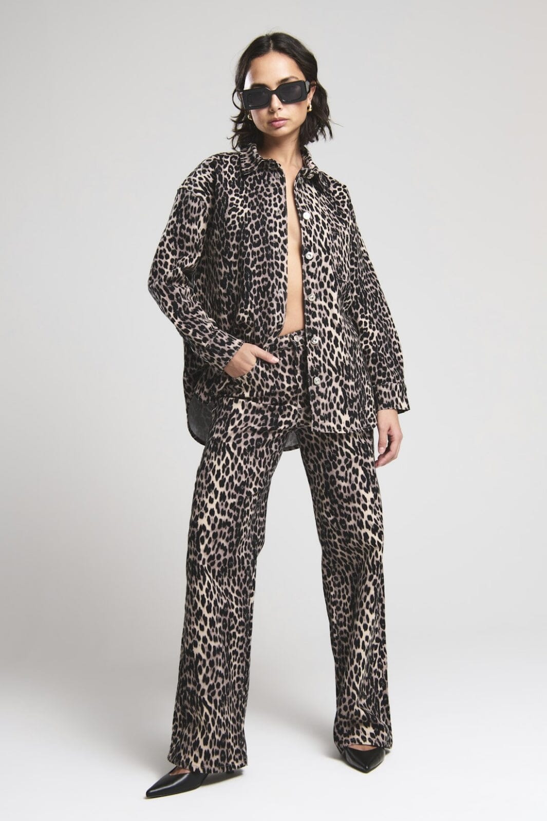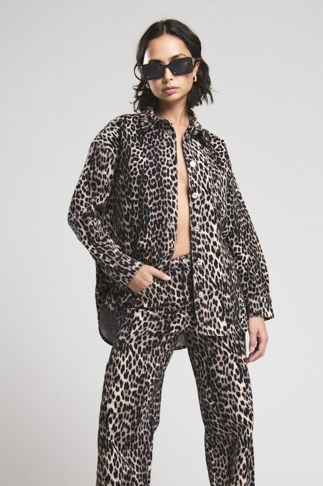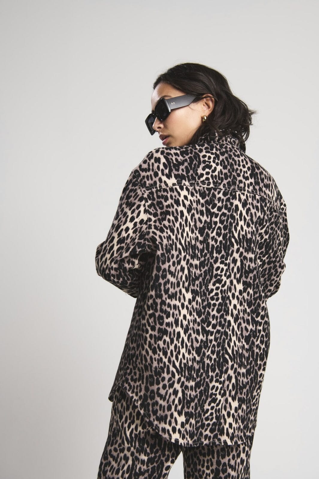 Skjortejakke fra Only med svart leopardmønster og beige detaljer. Den har en klassisk skjortekrage og lange ermer med knapper hele veien ned.