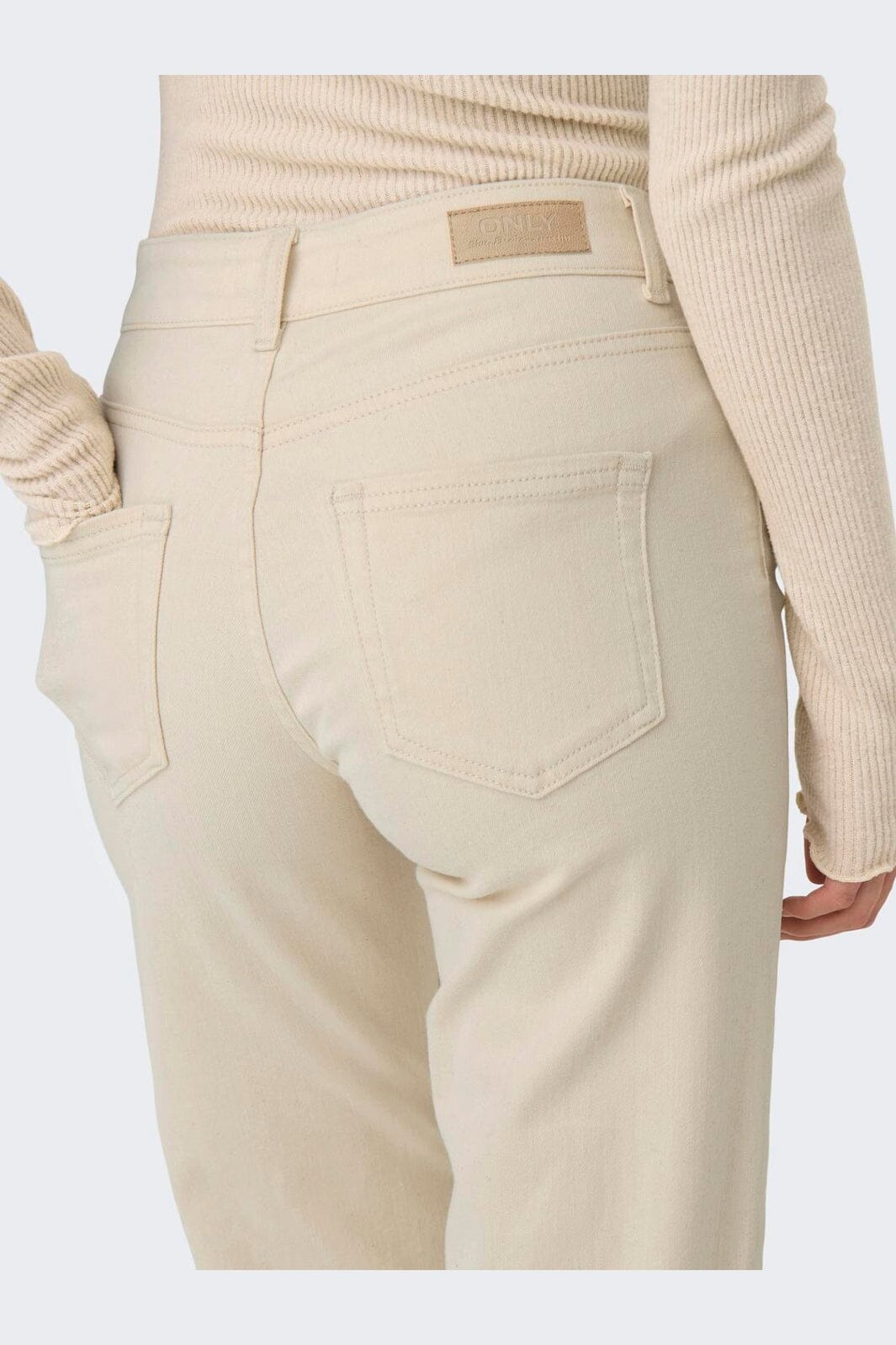Rette bukser fra Only i en offwhite farge. Buksene har en rett passform med middels høy midje og ankellengde.