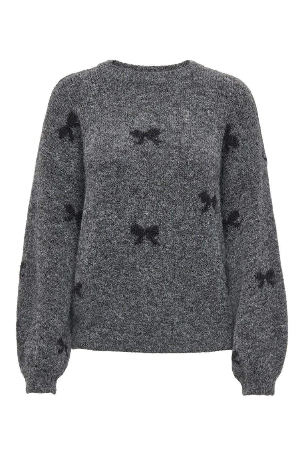 Only Onlbrunhilda Life Ls Bow O-Neck Knt Farge: 4947221 Medium Grey Melange Black/Mini Bow
