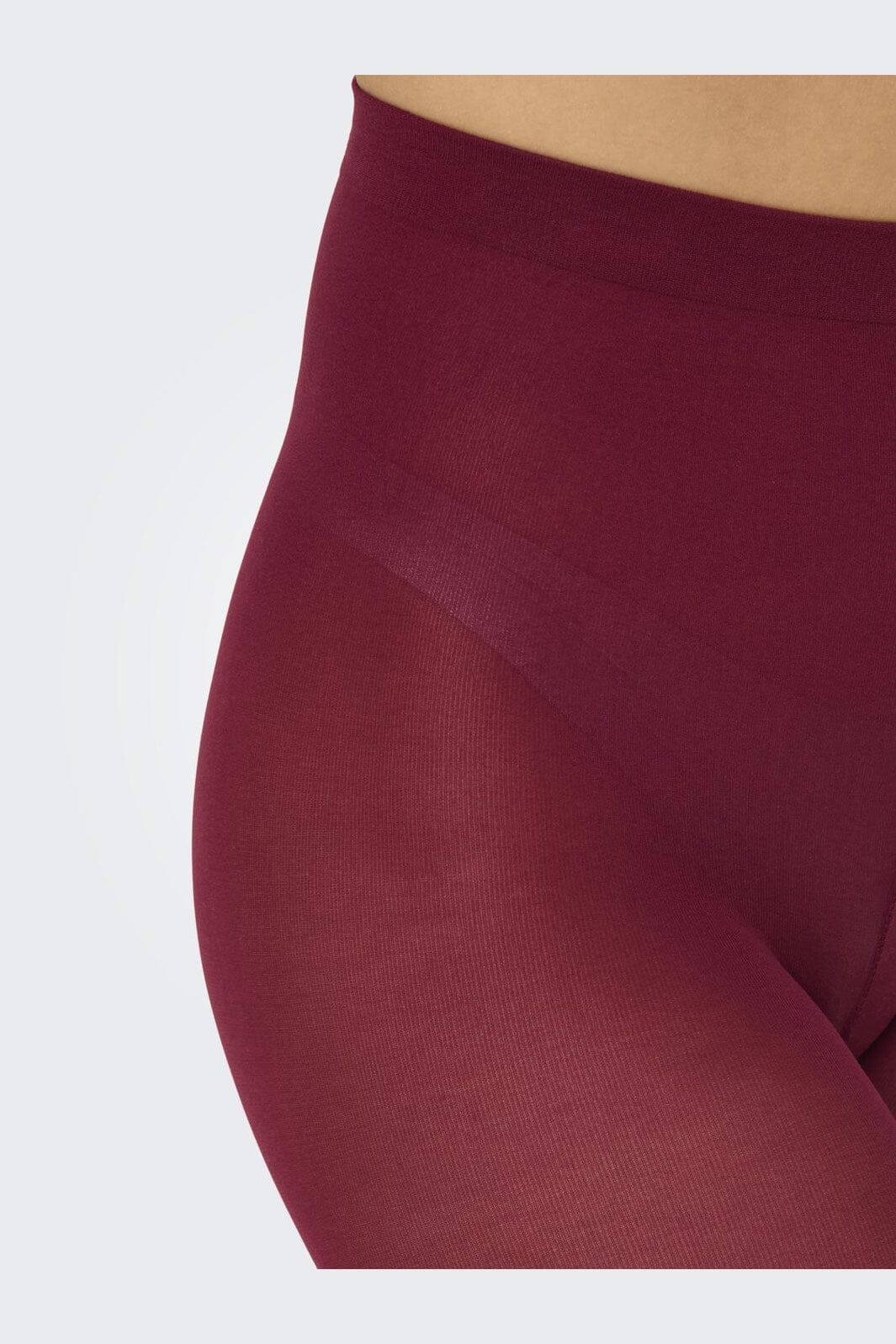 Bordeaux strømpebukser fra Only med høy midje og 80 denier tykkelse. Strømpebuksene har en glatt og ensartet overflate uten mønstre.