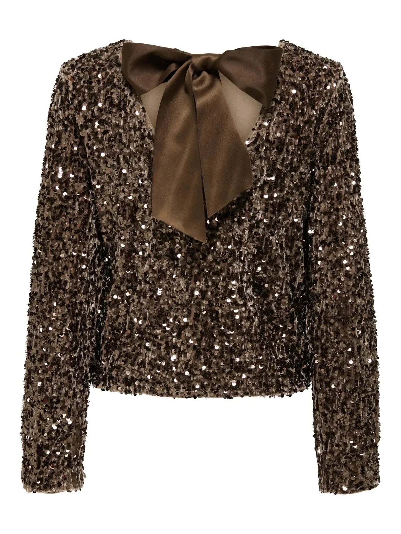 Only Onlconfidence L/S Sequin Bow Top Farge: 4877640 Mountain Trail Mountain Trail Sequins+Mountain Trail Bow