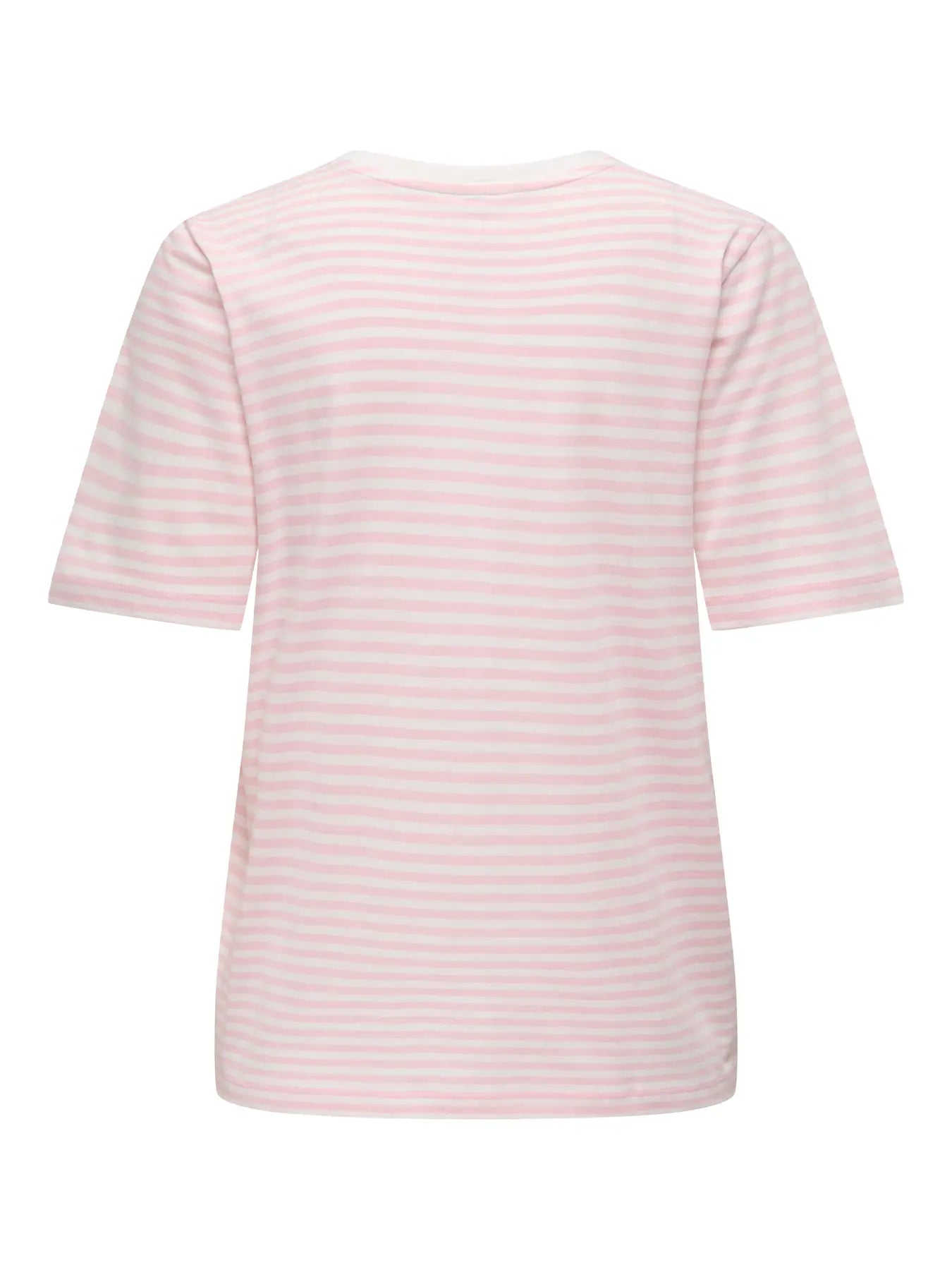 Stribet T-skjorte fra Only i rosa og hvitt. Laget av 100 % økologisk bomull med en liten kirsebærbroderi på brystet.
