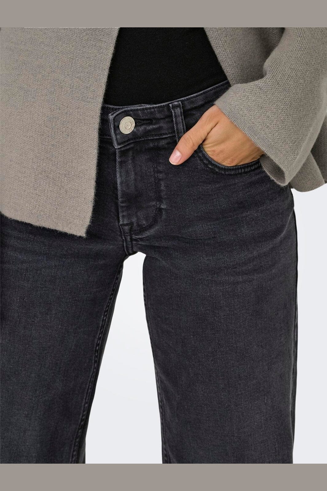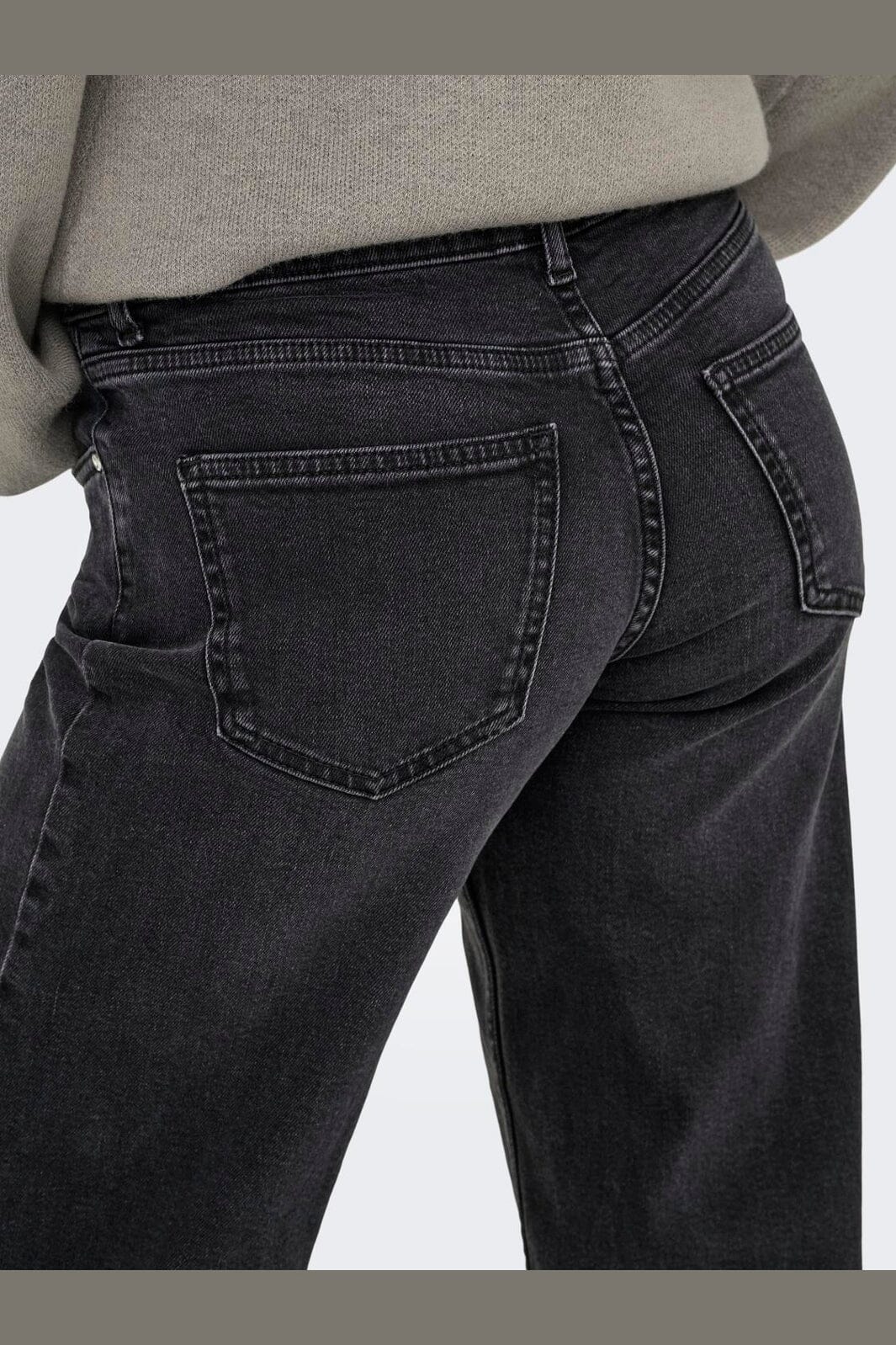 Wide leg-jeans fra Only i vasket svart. Jeansene har en løs passform og vide ben som går til ankelen.