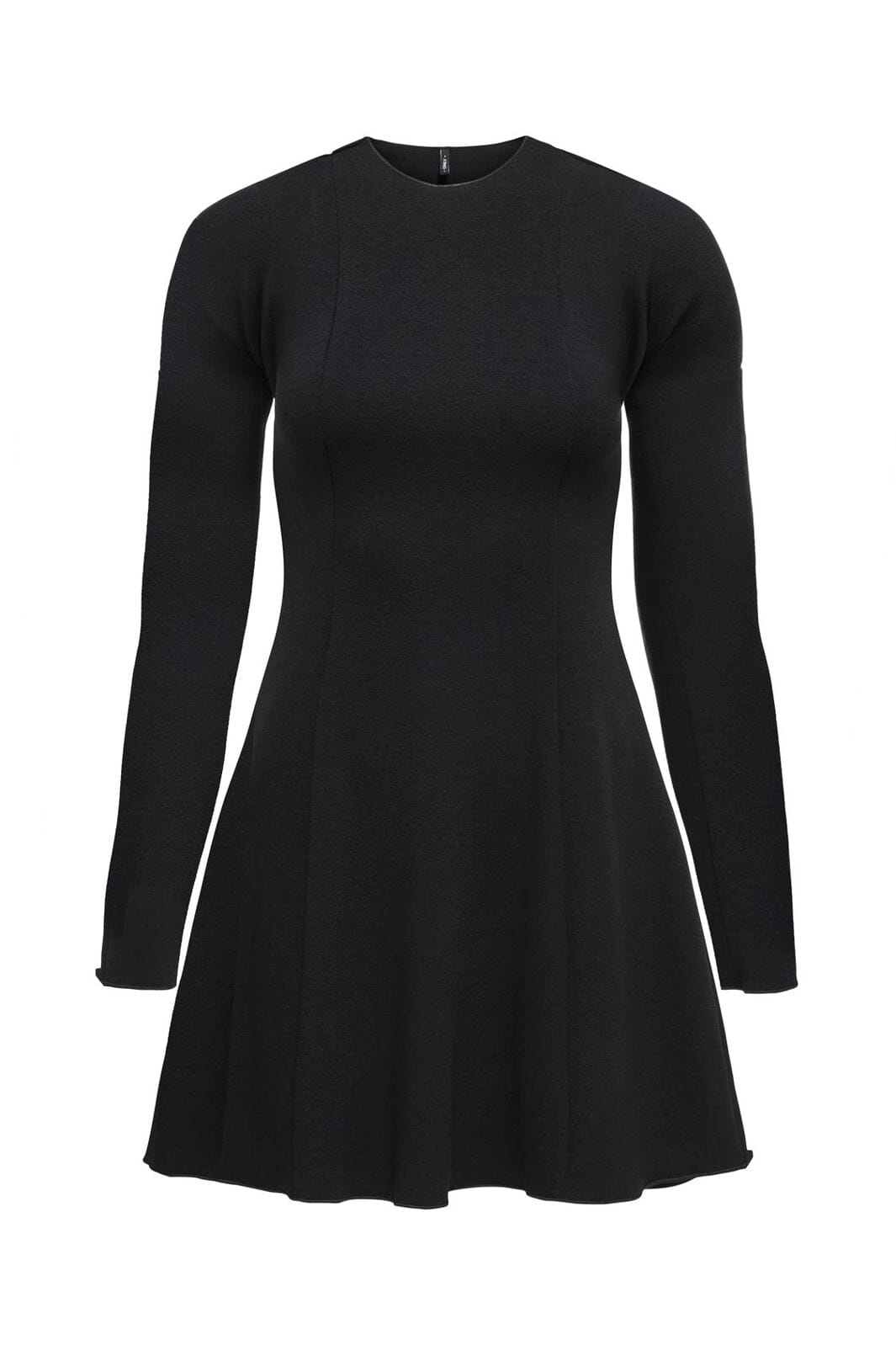 Svart kjole fra Only med lange ermer og rund halsutskjæring. Kjolen har en regular fit og rekker til knærne. Den er laget i en myk kvalitet med lett stretch.