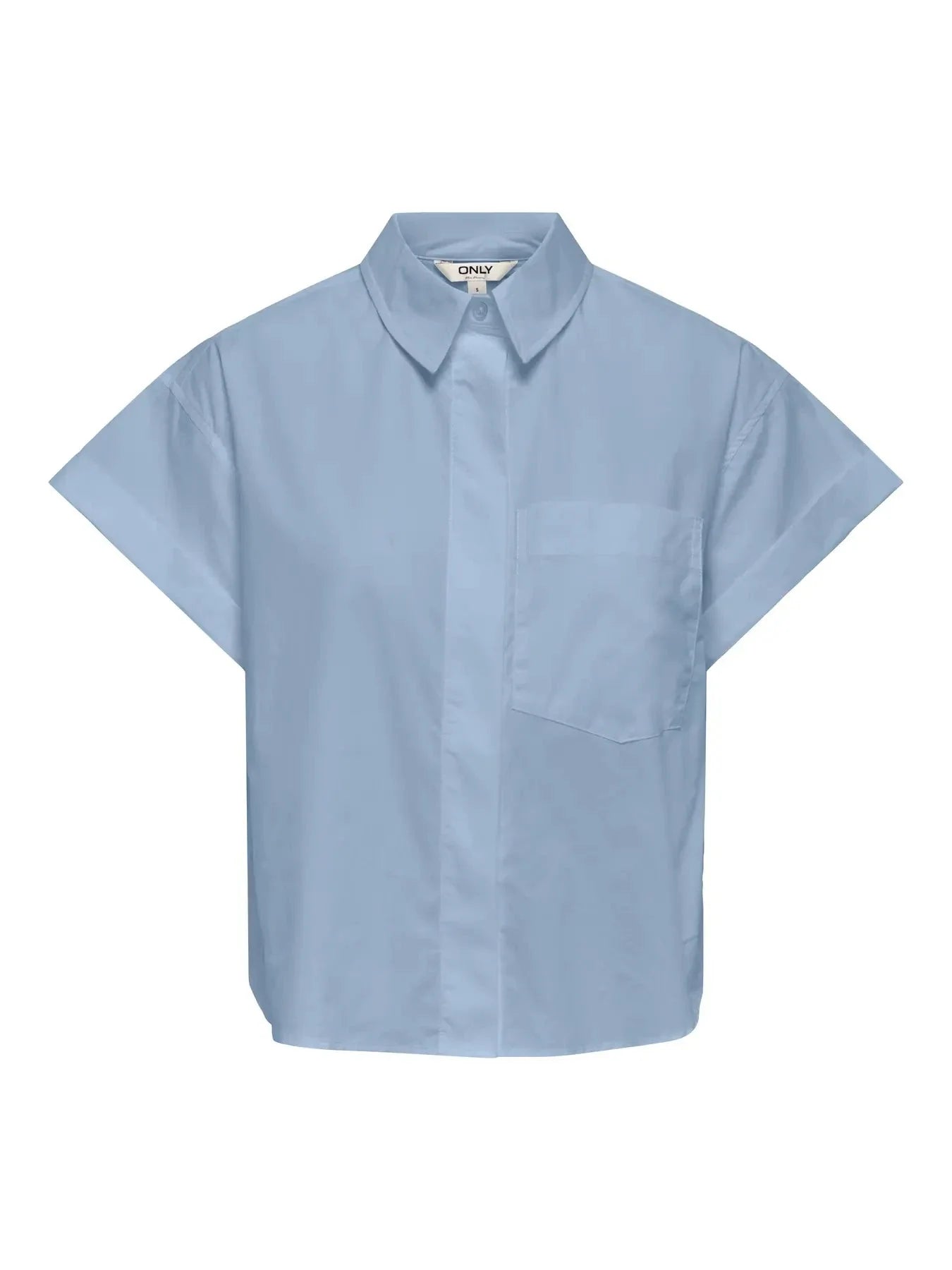 Lys blå kortermet skjorte fra Only, laget av 100 % bomull. Skjorten har en klassisk skjortekrage og en brystlomme på forsiden.
