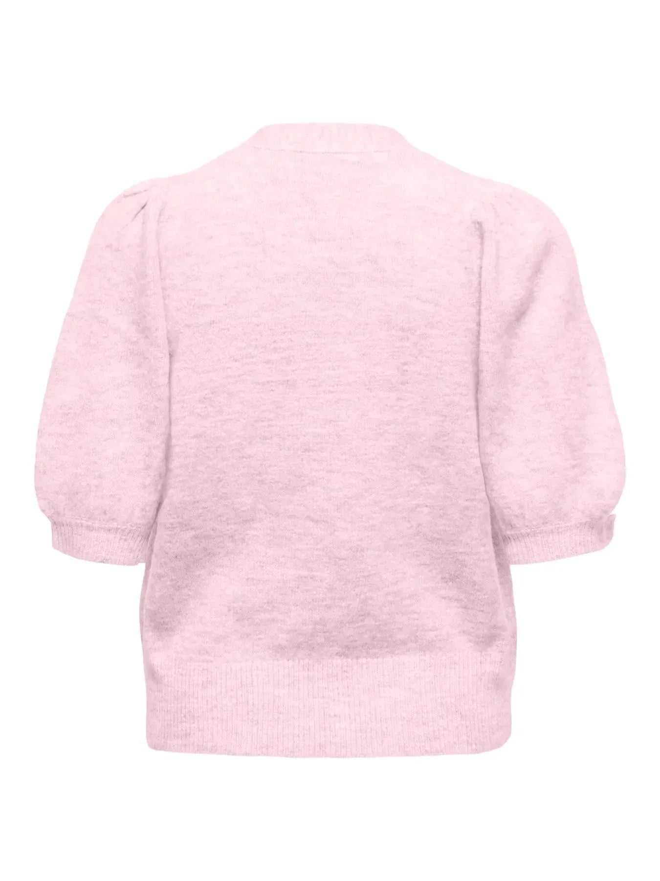 Rosa cardigan fra Only med V-hals og korte ermer. Den har knappelukking foran og en løs passform som gir bevegelsesfrihet.