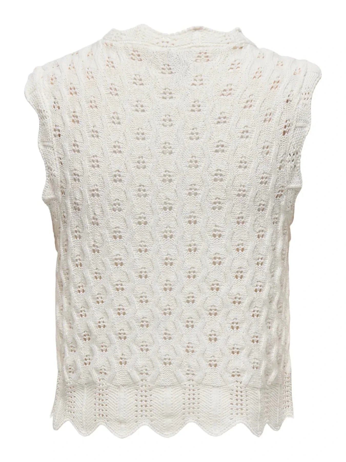 Strikket topp fra Only i en offwhite farge. Toppen har dekorative sømmer og blonder samt et mønster med små hull.