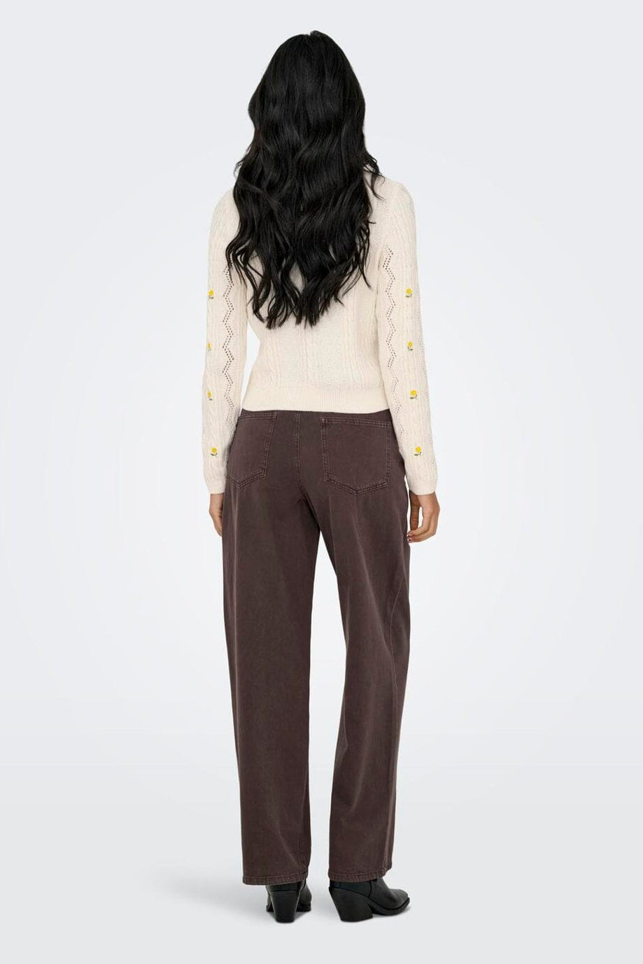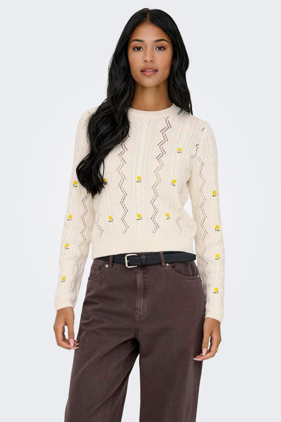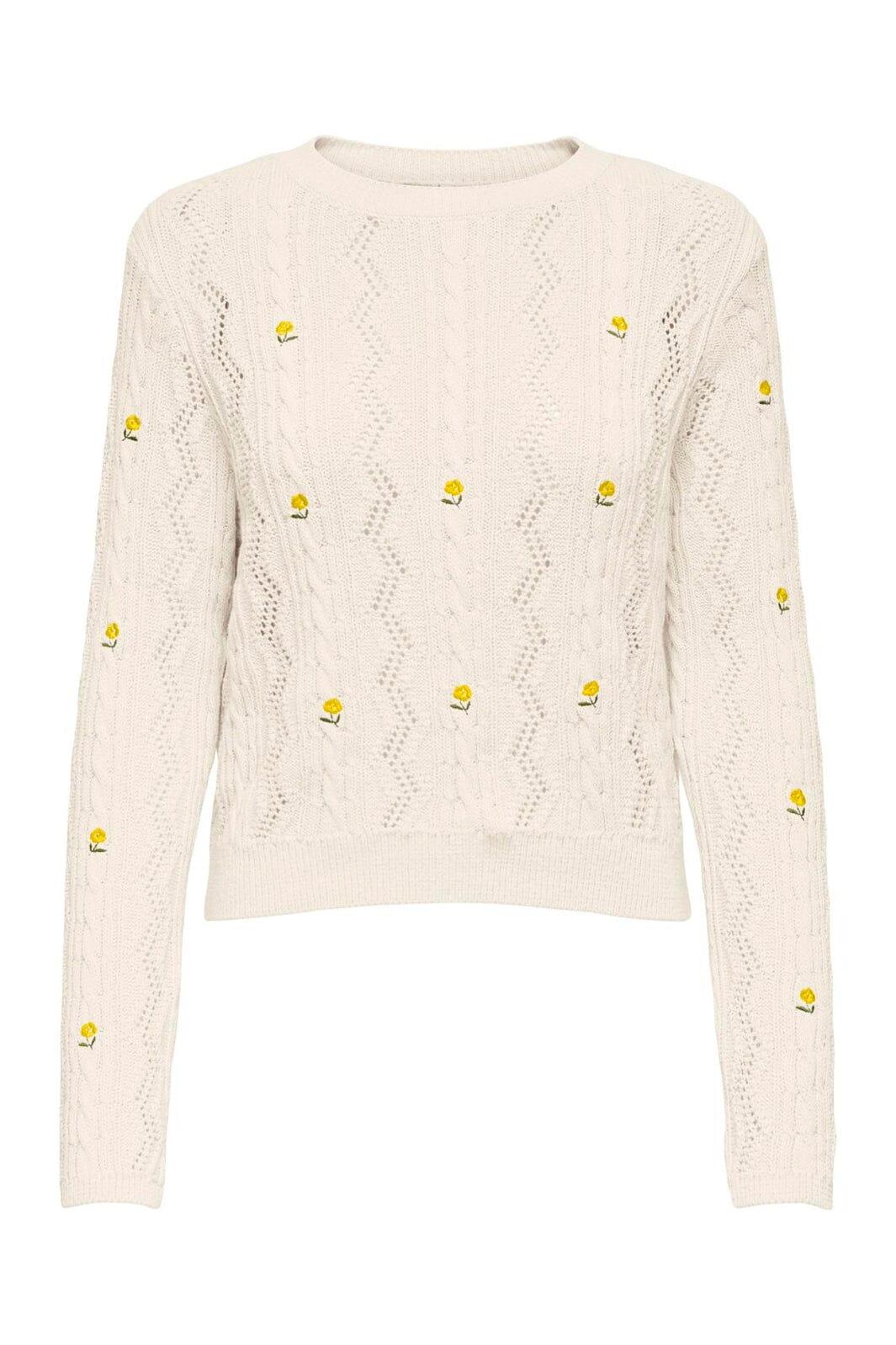 Only Onlrita Life Ls Embr Cable Knt Farge: 4862605 Ecru Yellow Flower