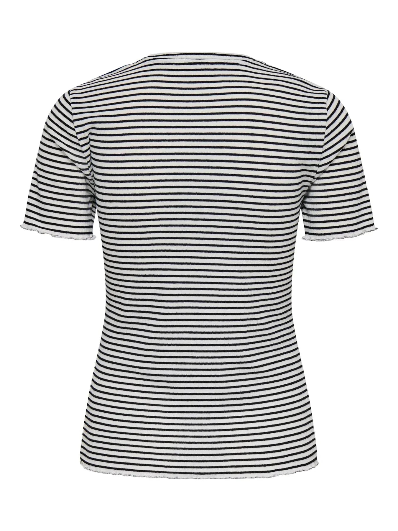 Stripete topp fra Only med korte ermer og rund hals. Toppen er hvit og svart og har et stripet mønster.