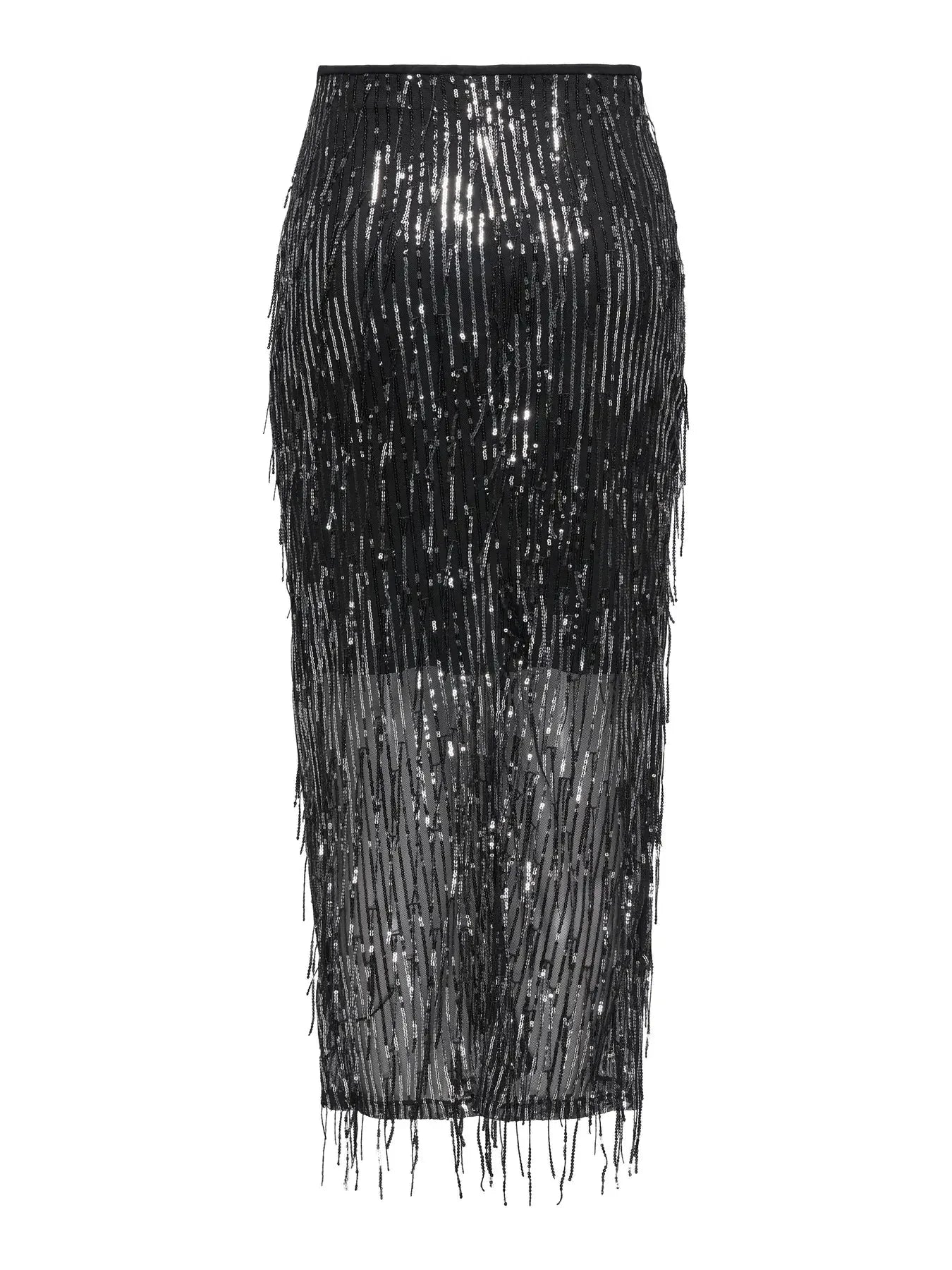 Only Onlspacy Long Sequins Skirt Farge: 4877211 Black W. Silver Sequins