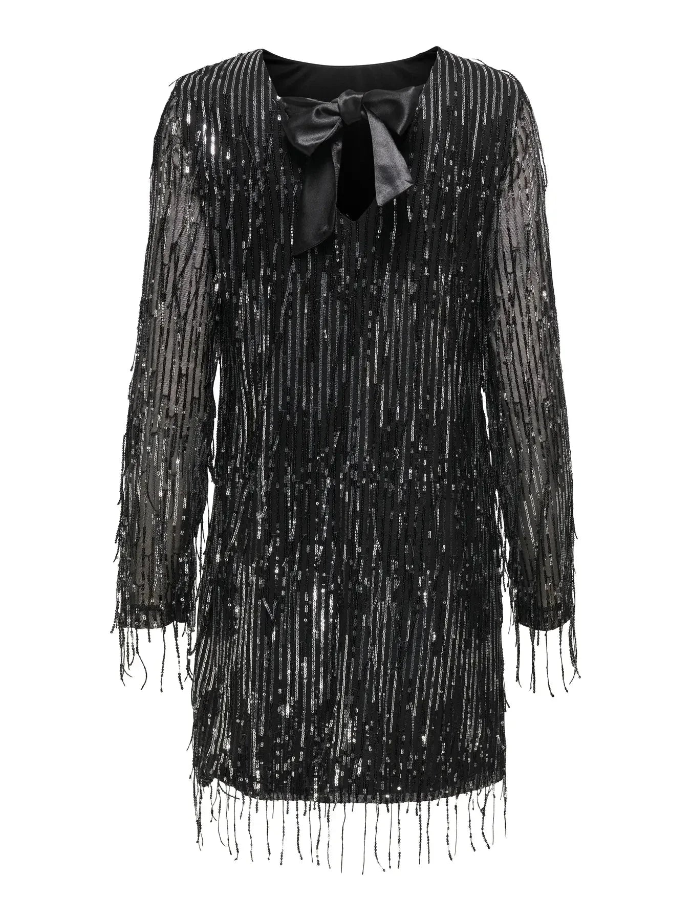Only Onlspacy Ls Sequins Bow Dress Farge: 4877201 Black W. Silver Sequins